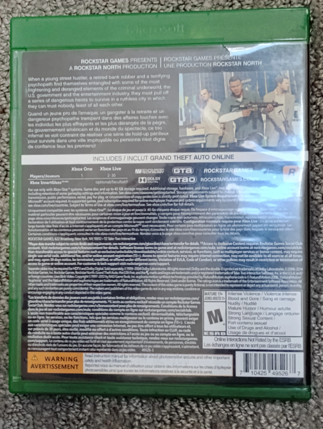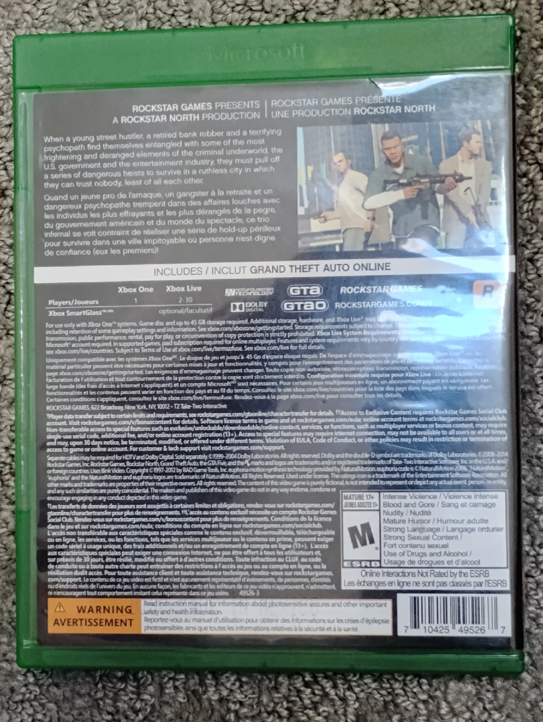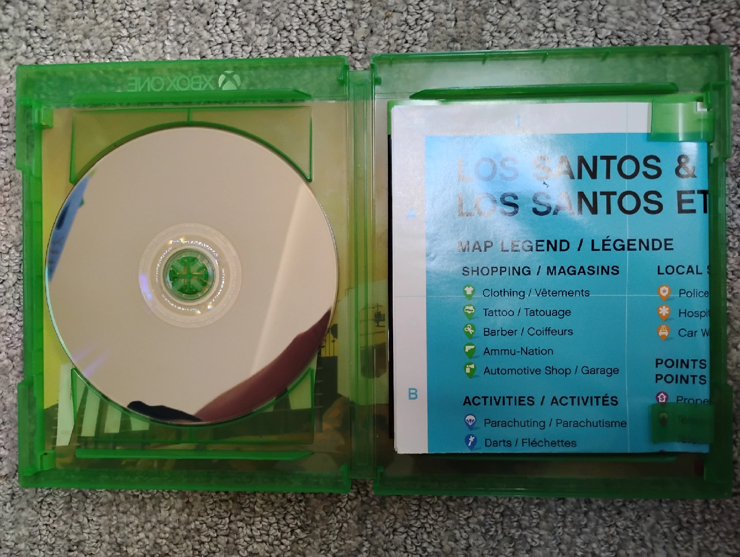 Selling Grand Theft Auto V for Xbox One. Includes the game disc and map. Ready for a new player!