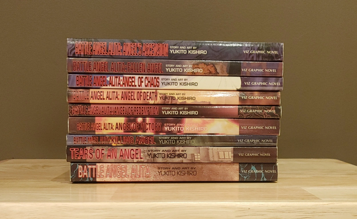 10Selling the complete Battle Angel Alita graphic novel series by Yukito Kishiro. This includes: - Angel's Ascension - Fallen Angel - Angel of Chaos - Angel of Death - Angel of Redemption - Angel of Victory - Killing Angel - Tears of an Angel Selling these for cheap only because the first volume is in acceptable/good condition. No pages are falling and it's very readable, it's just not in great condition. Message me for any inquiries.