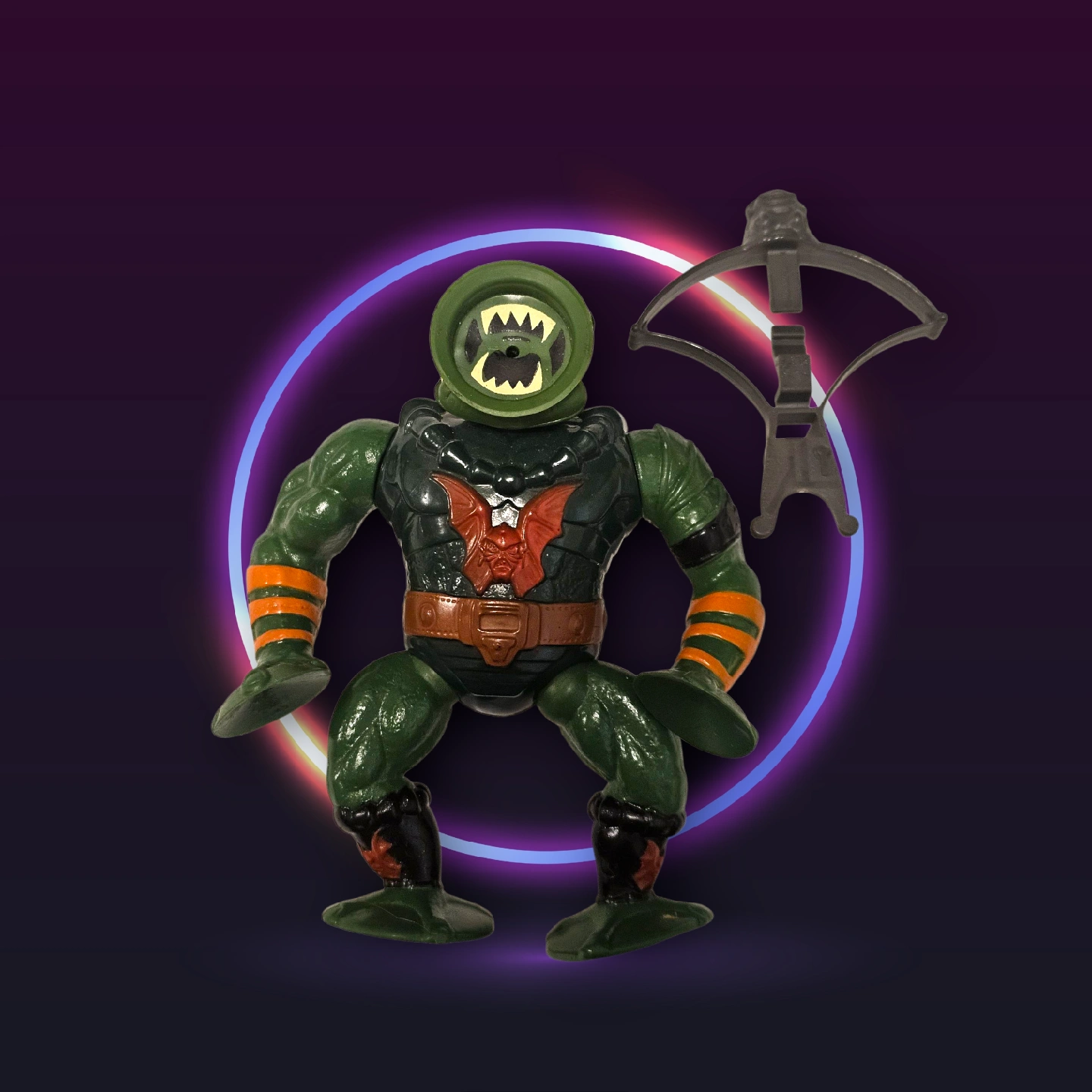 From the vintage Masters of the Universe toy line comes Leech, the evil energy-draining member of the Evil Horde! This classic figure from the 1980s includes his original crossbow accessory and features the iconic suction-cup limbs that made him one of the most unique MOTU figures ever made.