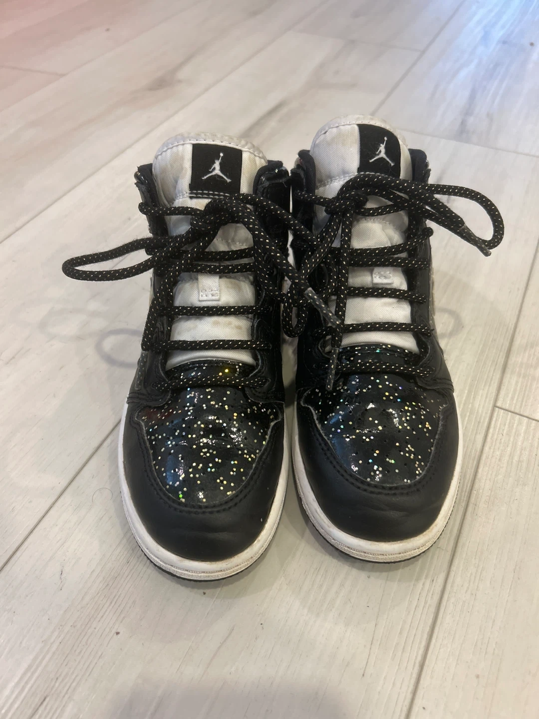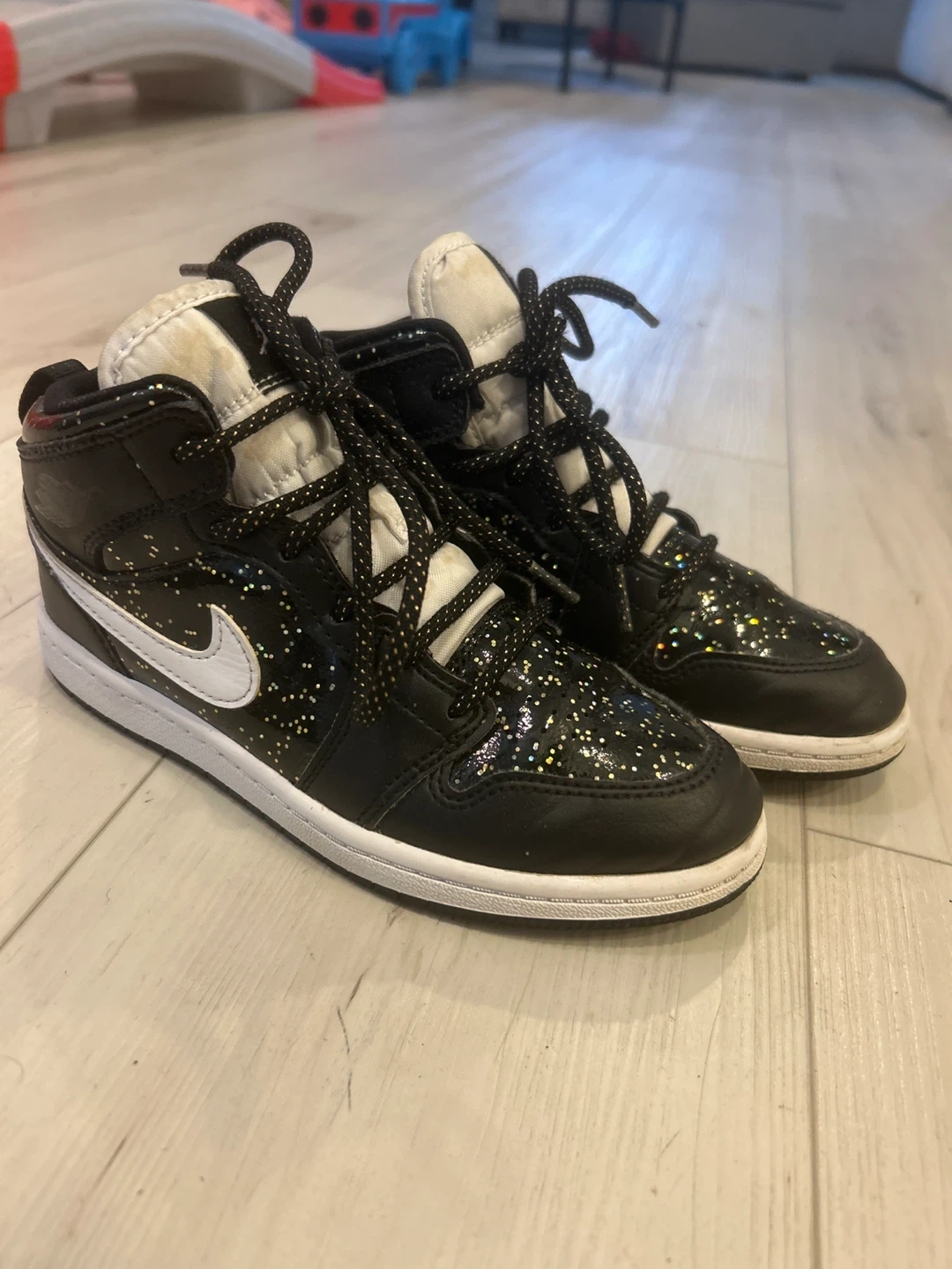 Buy & SellJordan High Top Sneakers - Size US 2YJordan High Top Sneakers - Size US 2Y$30Selling a pair of Jordan high top sneakers in size US 2Y. They are black with glitter detailing and a white swoosh.ConditionGoodBrandJordan0 chats·0 favorites·13 viewsSELLERverifiedKatarinaPalmer650 reviewsWHERE TO MEETCheck Location
