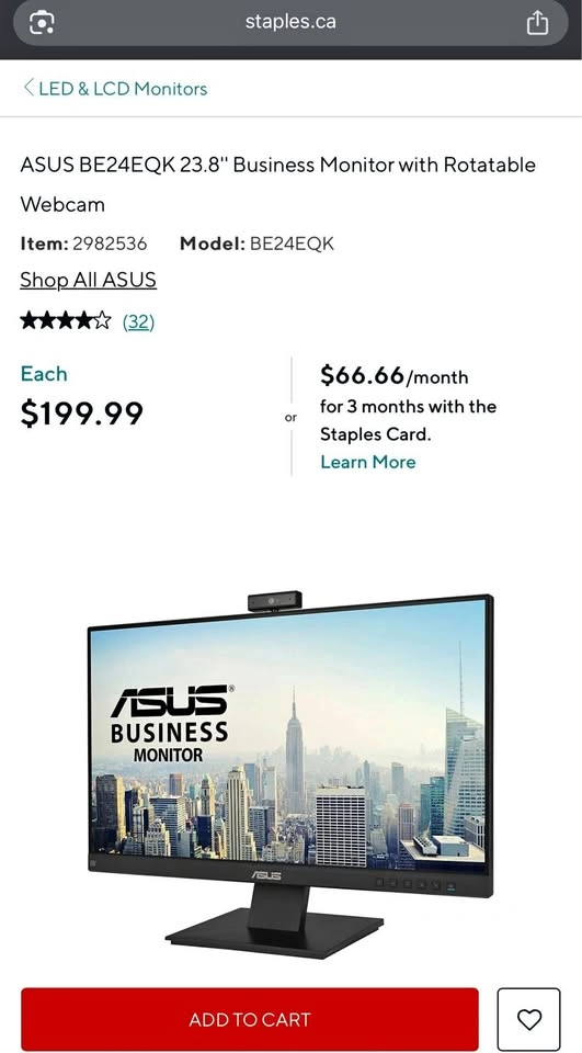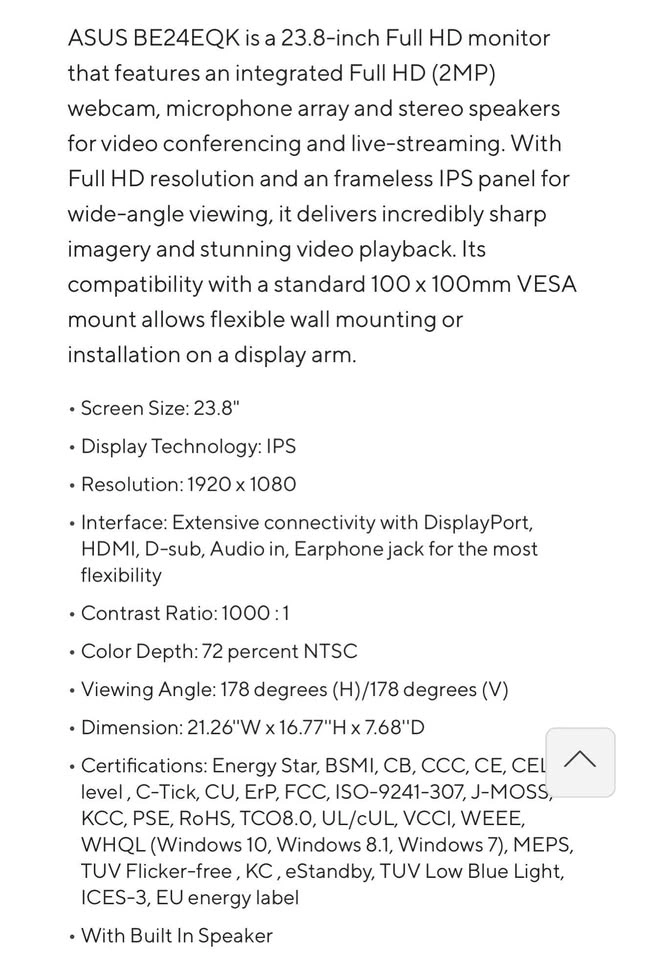 Buy & SellASUS BE24EQK 23.8'' Business MonitorASUS BE24EQK 23.8'' Business Monitor$135This item is new-open box. I tested to check functionality, please see video. Pick it up at Ryler way, Markham or Fenmar Dr and Weston Rd.WHERE TO MEETCheck LocationView MapSELLERverifiedRubenMarkham E27821 reviews0 chats·0 favorites·21 viewsSEND CHAT TO SELLERHi Ruben! I’m interested in your listing.Hi Ruben! I’m interested in your listing.Get the Karrot app to chatSign In to chat