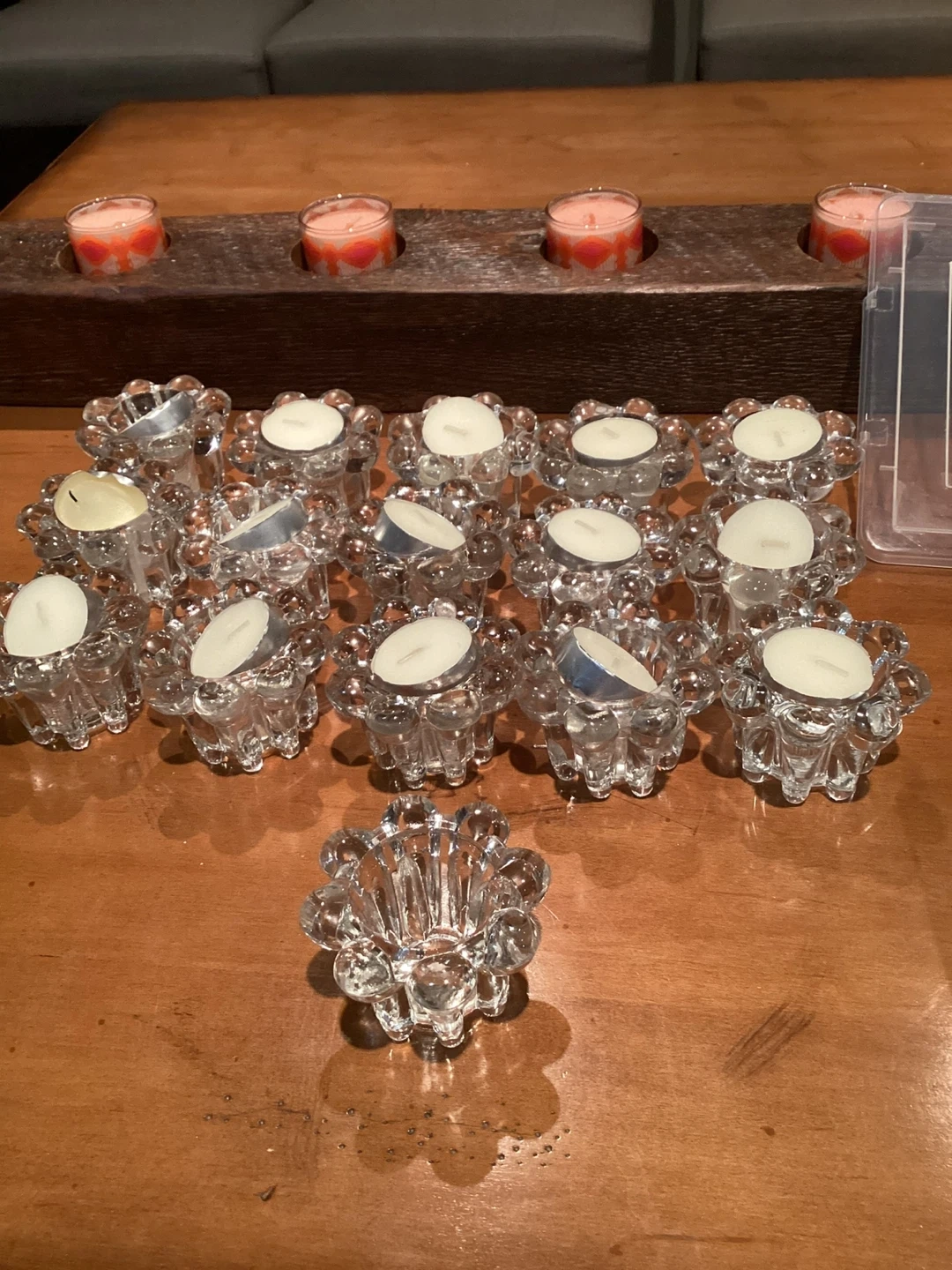 Selling a set of candle holders! There are some gold ones and some clear glass ones. They're perfect for adding a cozy touch to any room. Selling for $2 each!