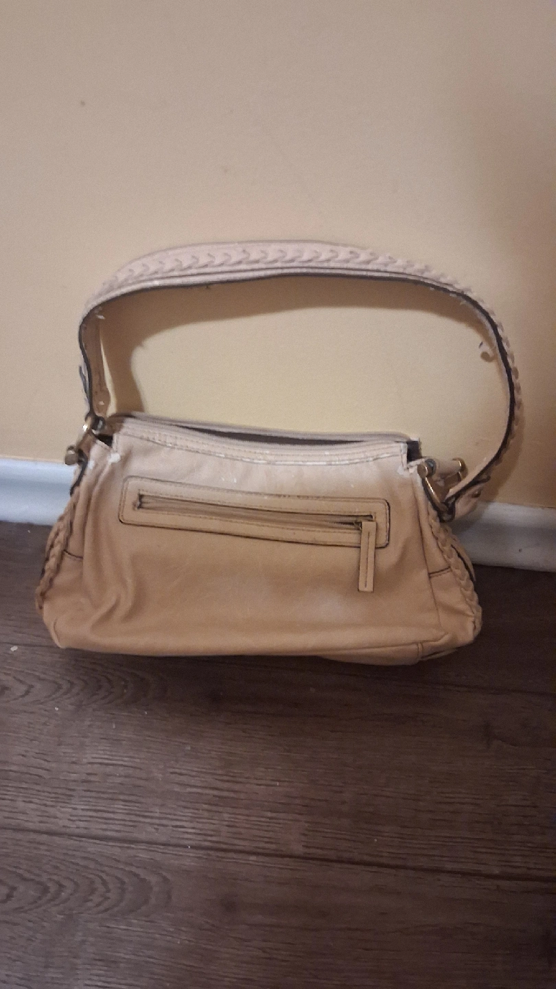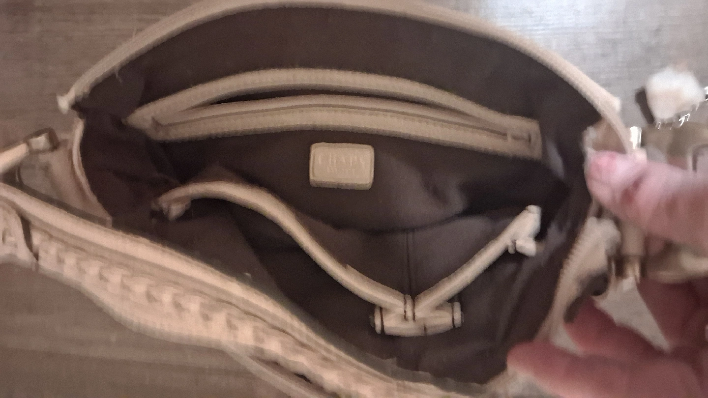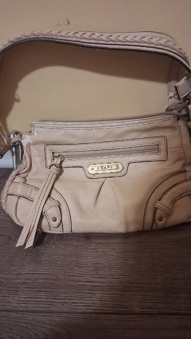 65I'm selling a Chaps shoulder bag in beige. It's a stylish and functional bag, perfect for everyday use. There are some signs of wear.