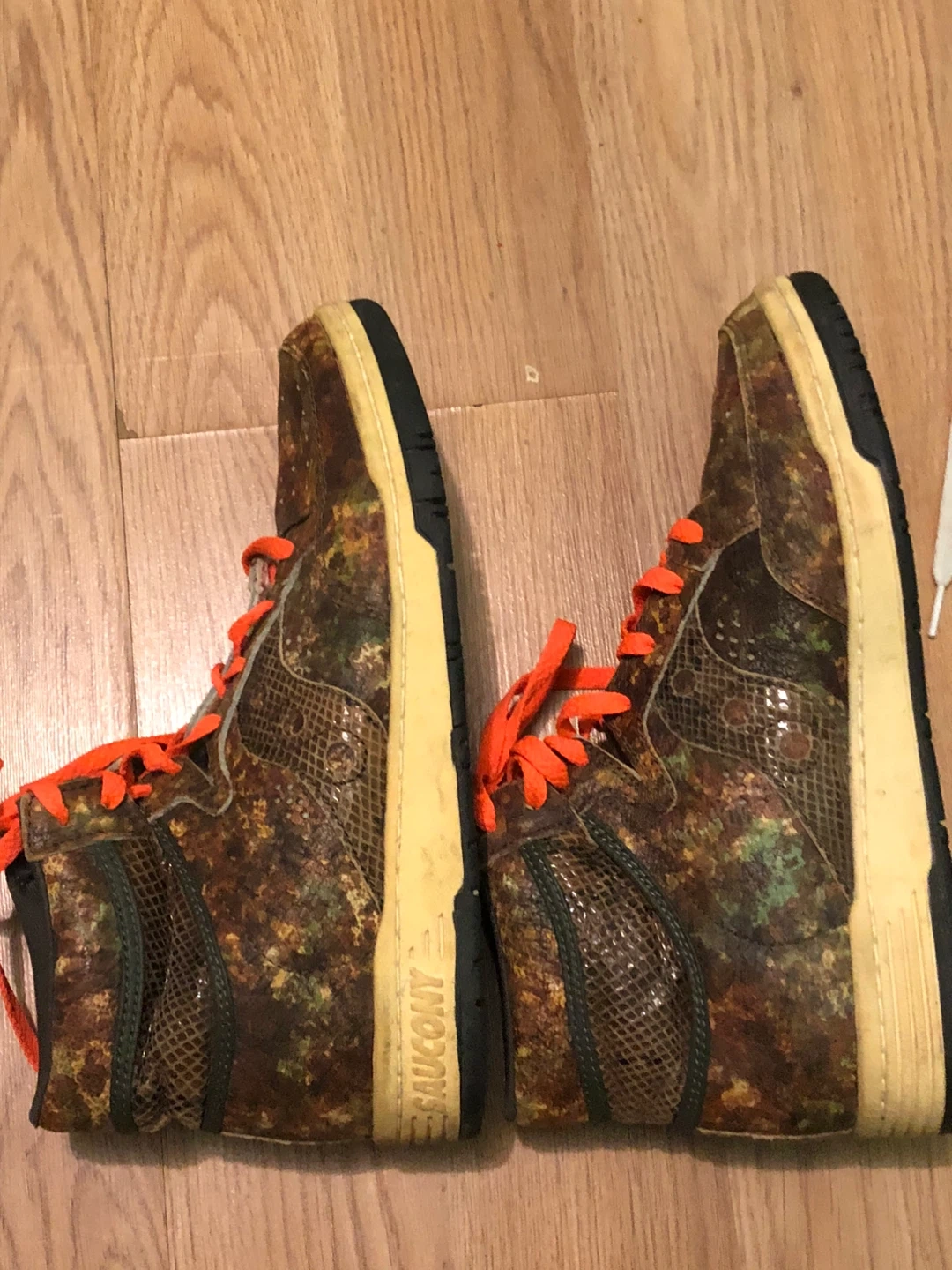 Selling a pair of Saucony men's shoes in US size 9. The upper is made of leather and nylon, with nylon lining and a rubber outsole. They're in great shape and ready for a new home!