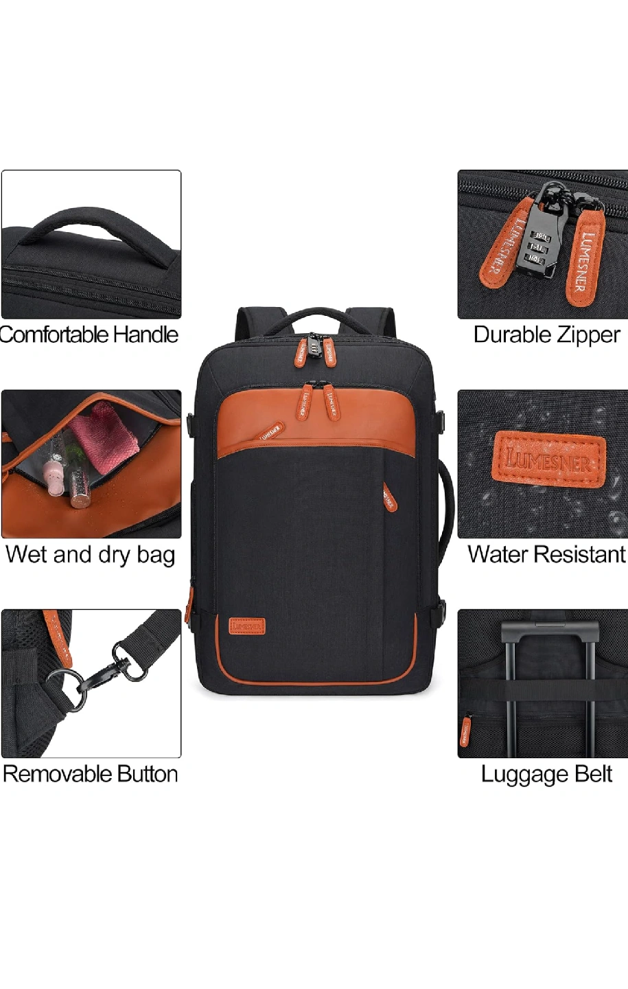 75Looking to sell my Lumesner carry-on travel backpack! It's in great shape and ready for your next adventure. It features: - Front zipper pockets - Roomy main compartment - Organizer pocket - Middle main pocket - Hideaway shoulder straps (can be converted into a duffel bag) - Comfortable handle - Durable zippers - Water-resistant material - Wet and dry bag compartment - Removable button - Luggage belt. Bought it for $50 before tax and have only used it twice for two trips. Amazing quality and a lot of room. Can fit under the chairs in planes.