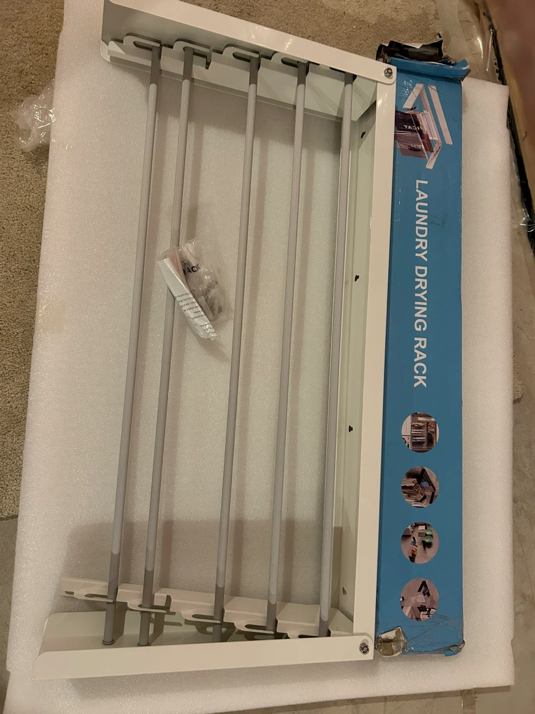 Selling a new laundry drying rack. It's never been used and is ready to help you save space and dry your clothes efficiently. Perfect for small apartments or anyone looking to air dry their laundry