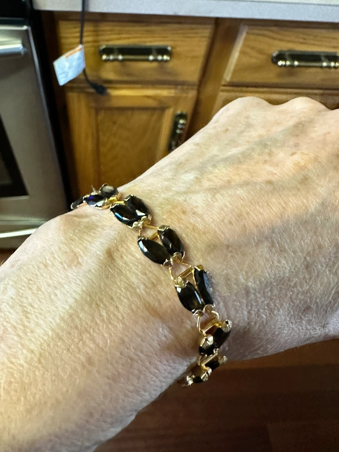 Selling a lovely bracelet with brown glass stones and gold-tone accents! It's in great shape and would make a nice addition to any outfit