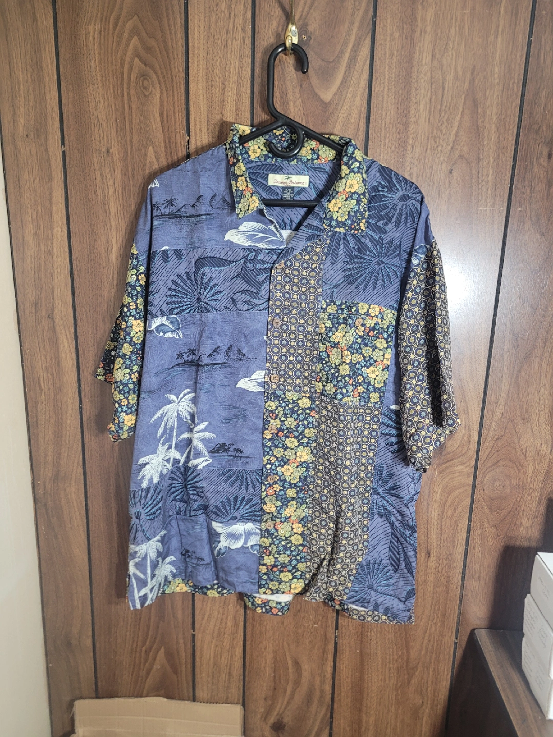 197Tommy Bahama shirt, size XL. It's a silk blend with a unique floral and tropical print. Perfect for summer!