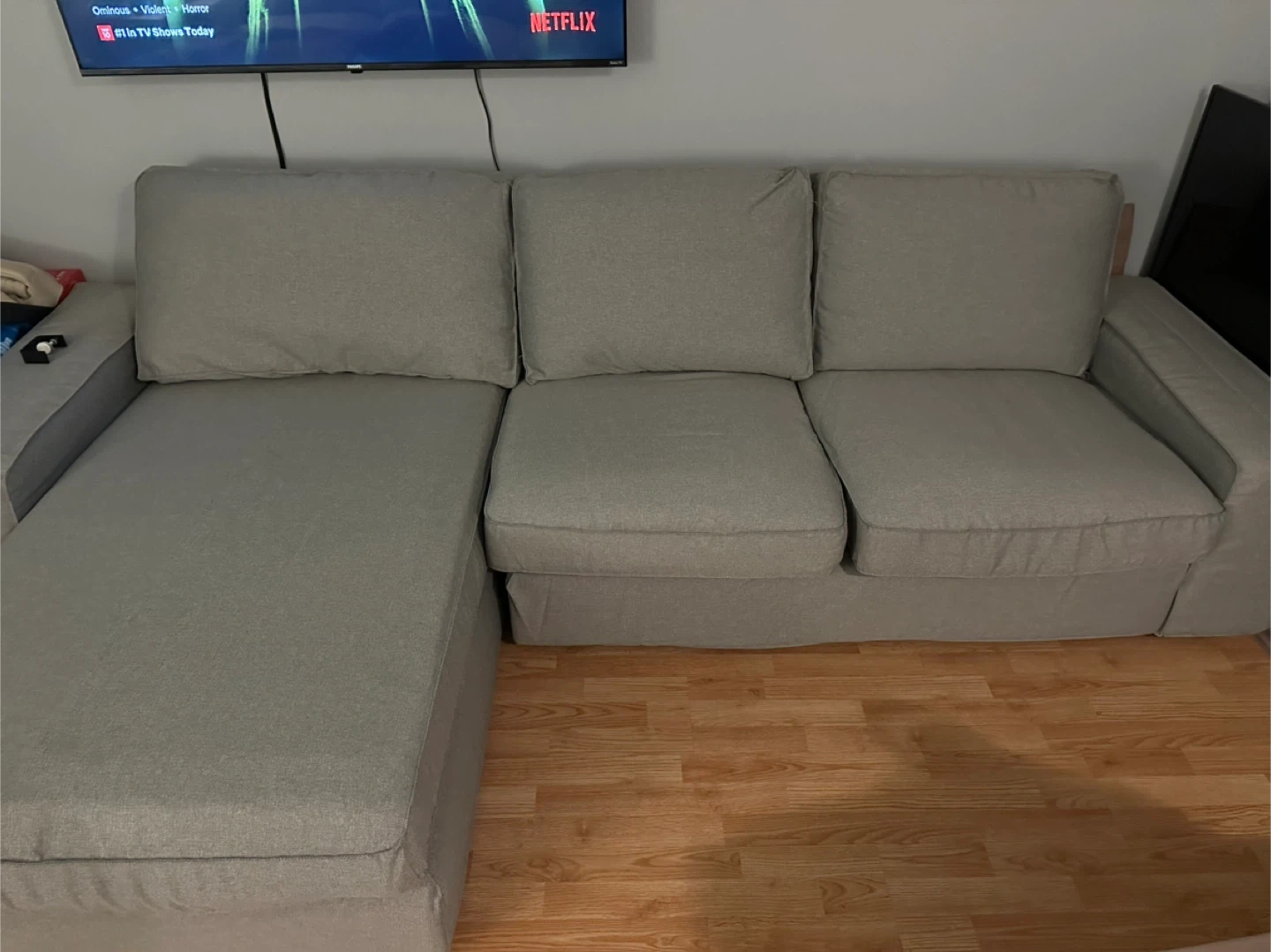 Selling a KIVIK loveseat with chaise from IKEA in Tibbleby beige/gray. It's a comfy and stylish addition to any living room! Originally bought for $1,199.00.