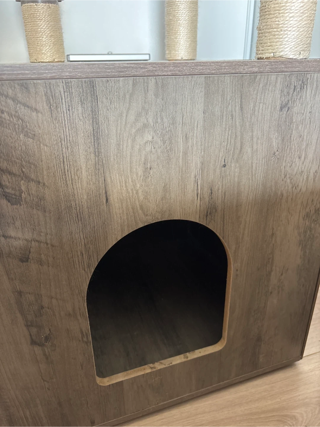 Looking to sell this cat tree with an enclosed condo! It's in great shape and provides a fun space for your furry friend to play and relax, or a place to hide your cats litter box. The condo offers a cozy hideaway, and the tree provides climbing and scratching opportunities. Just 1 year of use.