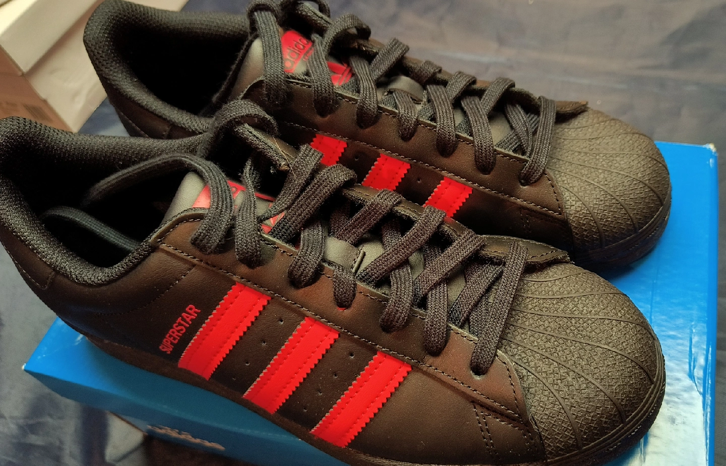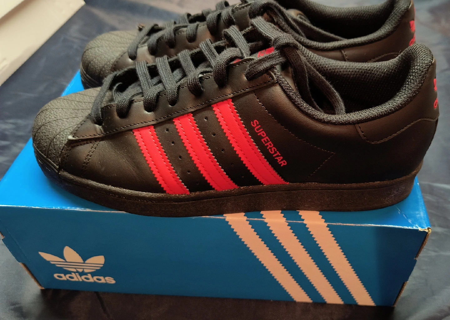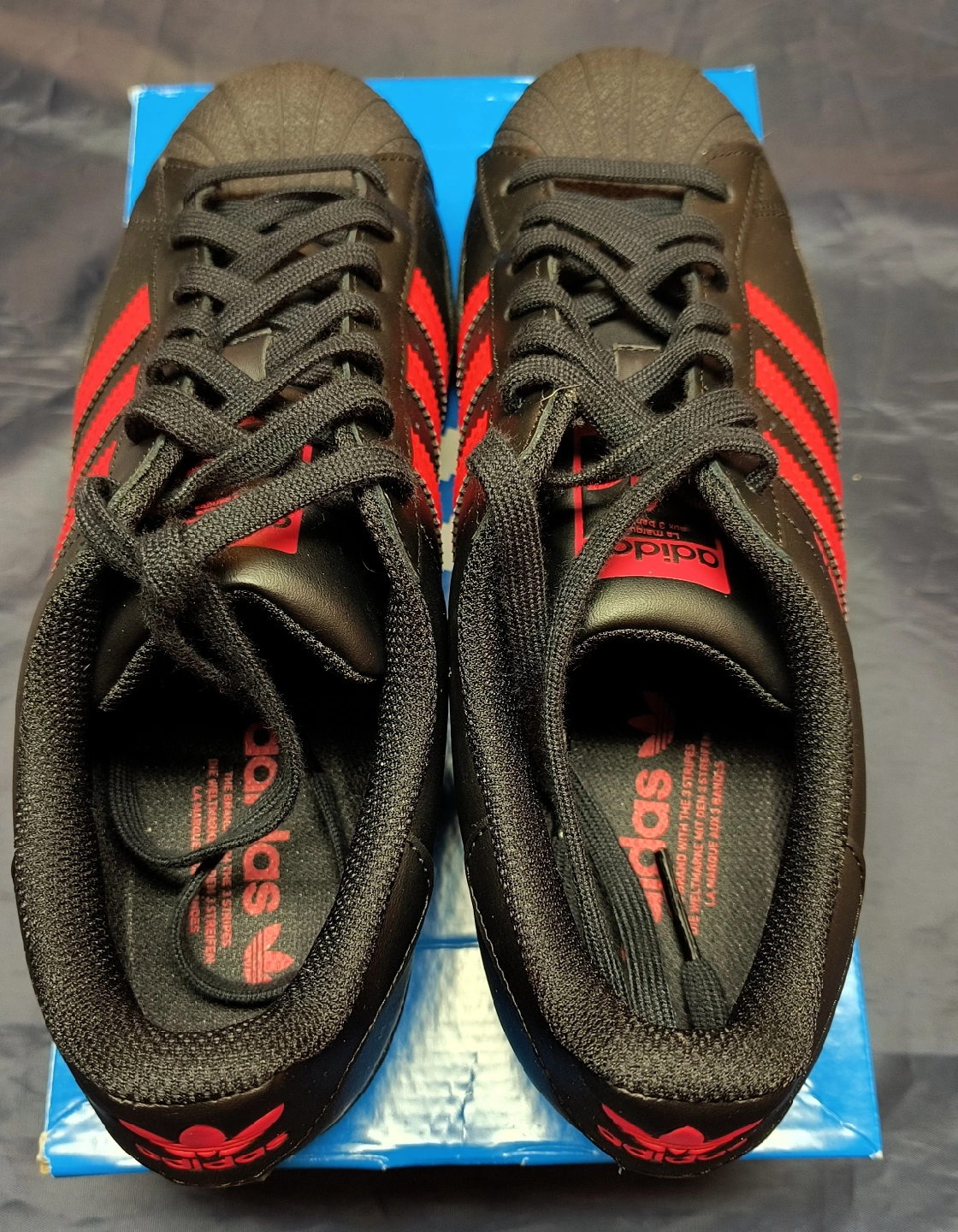 10Official Adidas Superstar originals red/black sz 9 men's. Brand new in box. From Adidas collection. $75. Retails for $120. From a reputable seller