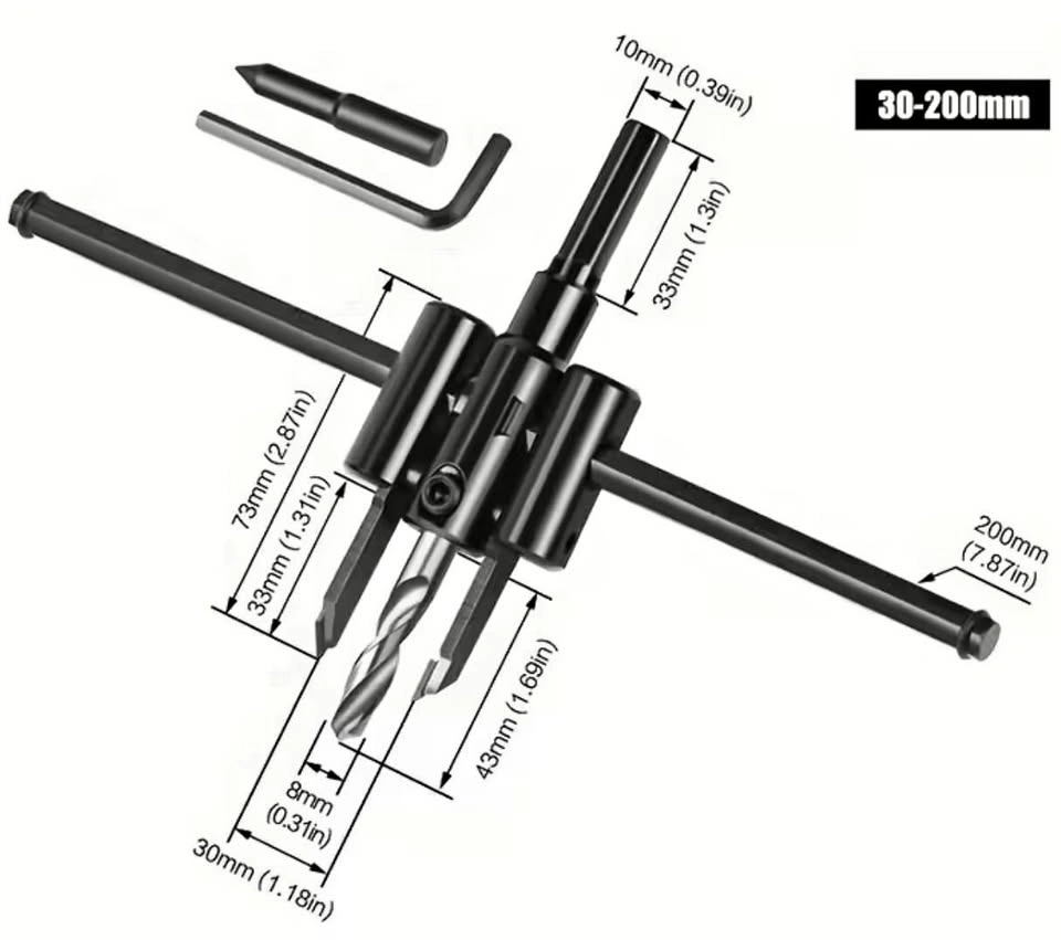 π© Adjustable Circle Hole Cutter (30β200 mm)
