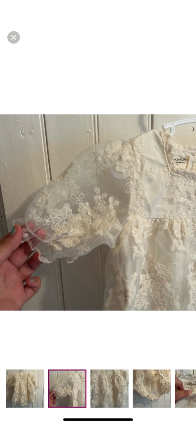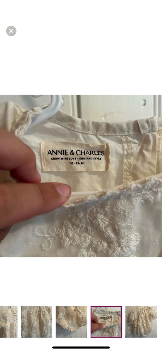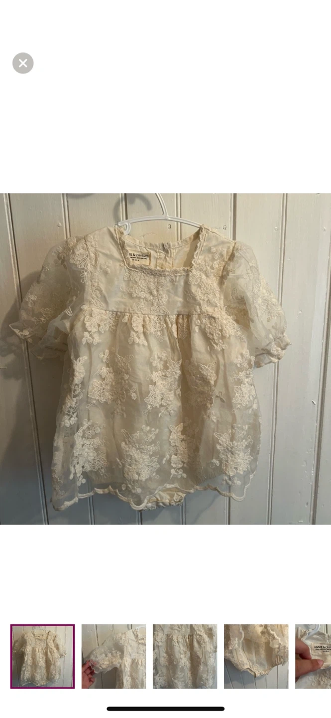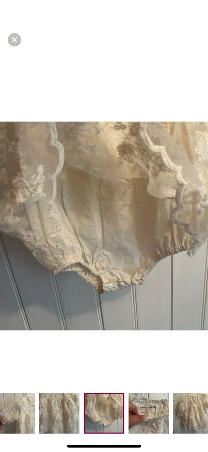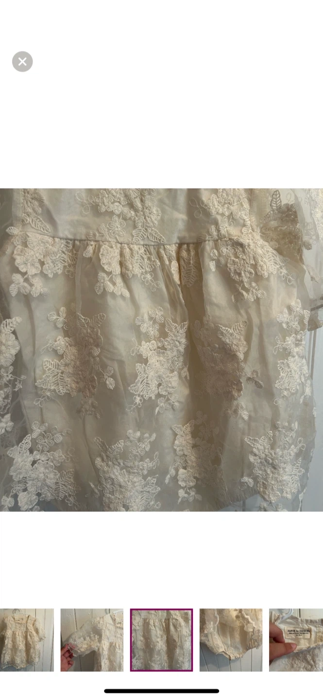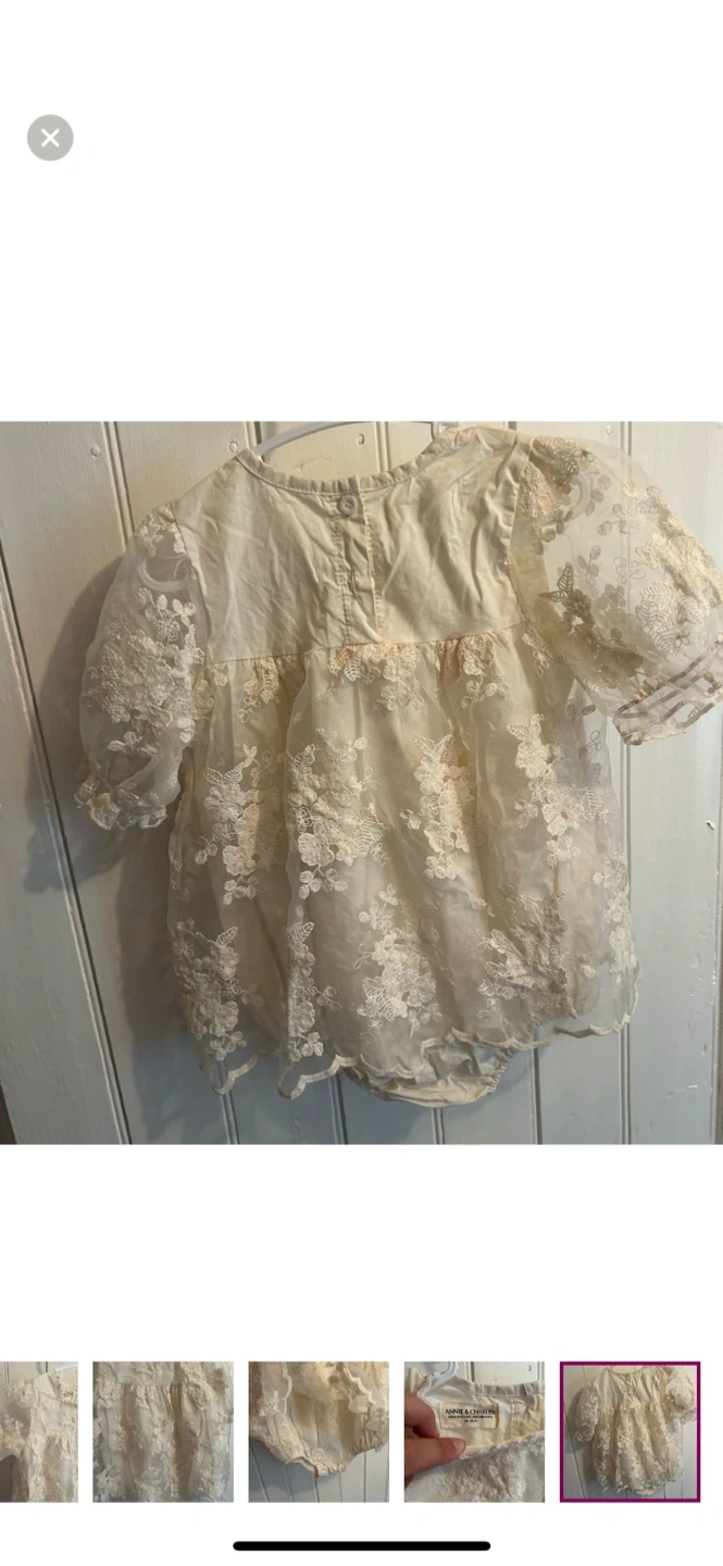 Annie & Charles brand. Short sleeve onesie with lace skirt overlay. White in colour. Size 18/24m. Brand new condition