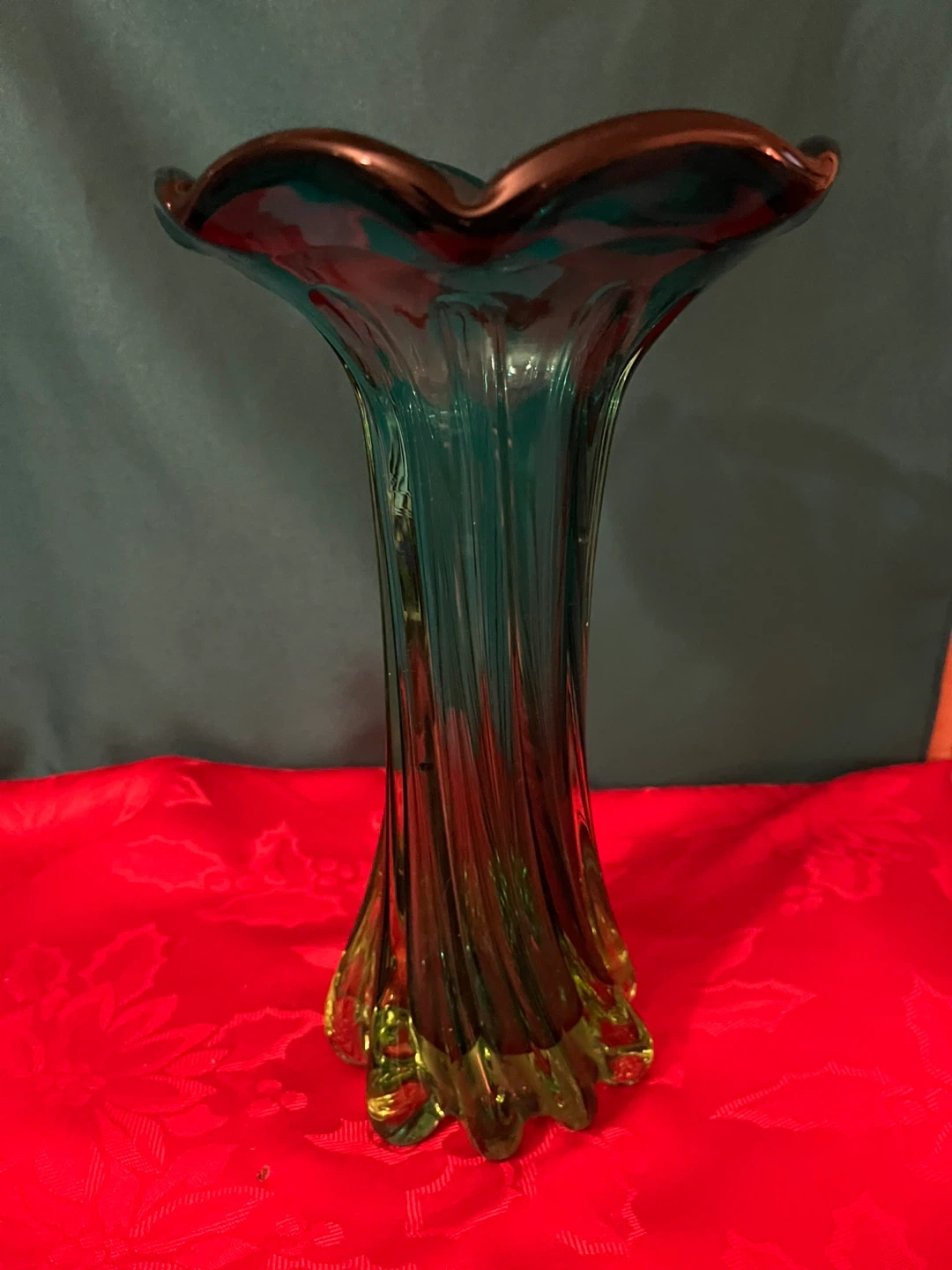 The definitive Murano blown glass indicator is the characteristic Murano disk at the bottom (the way the blow hole pontil was made smooth). It places the age of the piece to approximately the late ‘60’s.