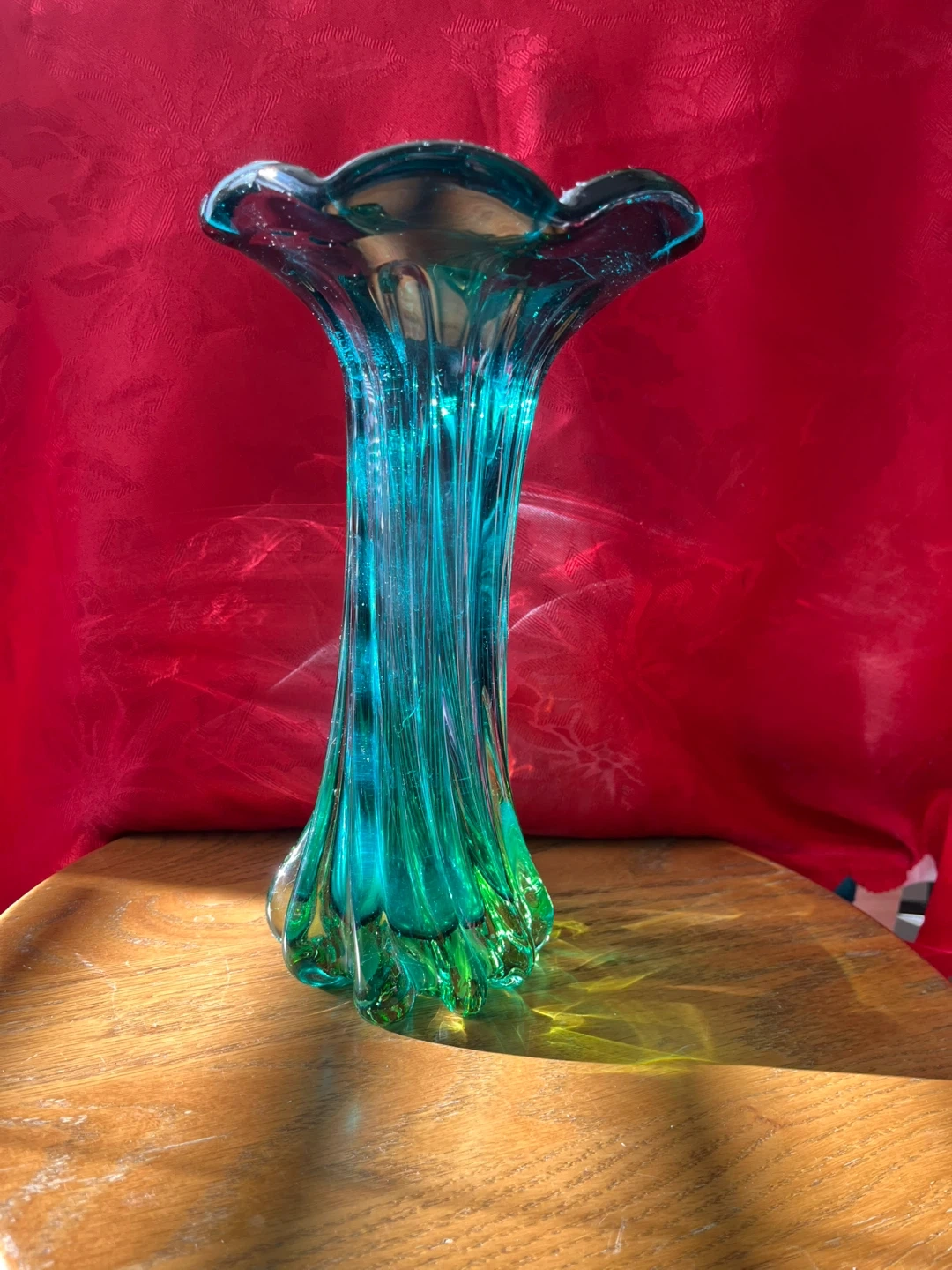 Vintage Murano Green/Turquoise Blown Glass Vase, 10 Inches Tall