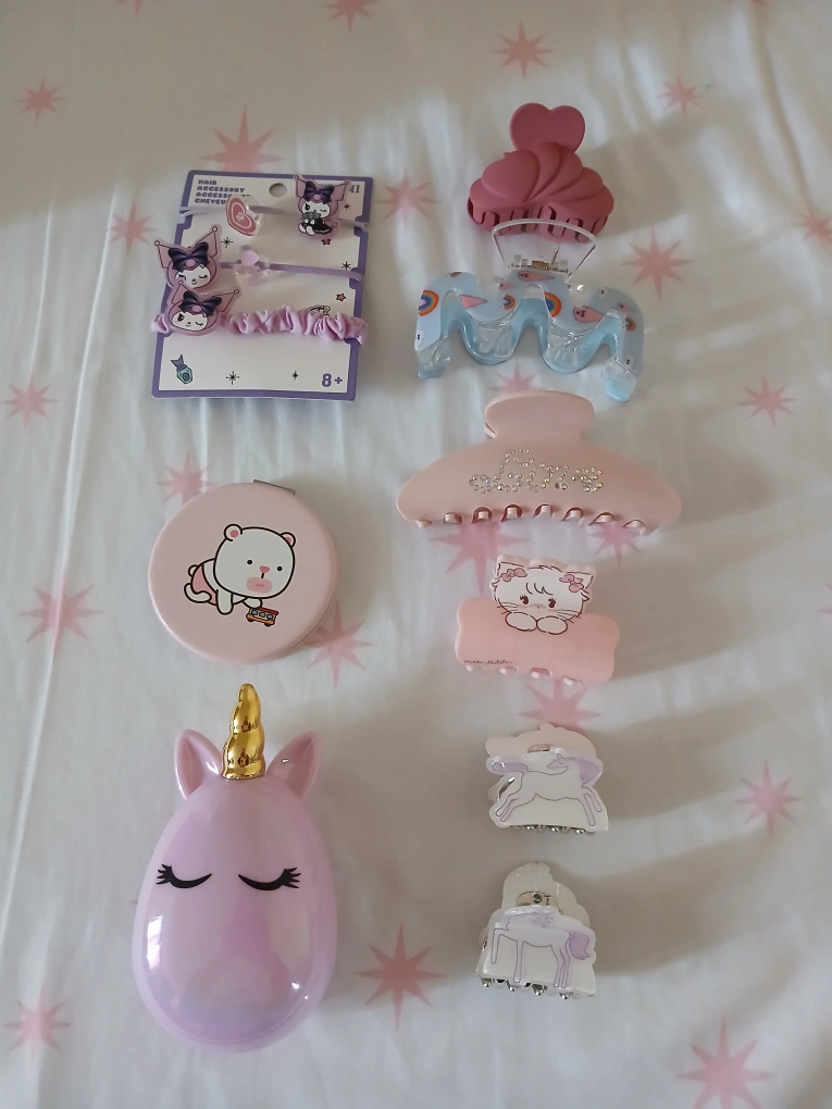 Selling a bundle of adorable hair accessories! Includes claw clips, hair ties, and a cute compact mirror. All purchased in Miniso.