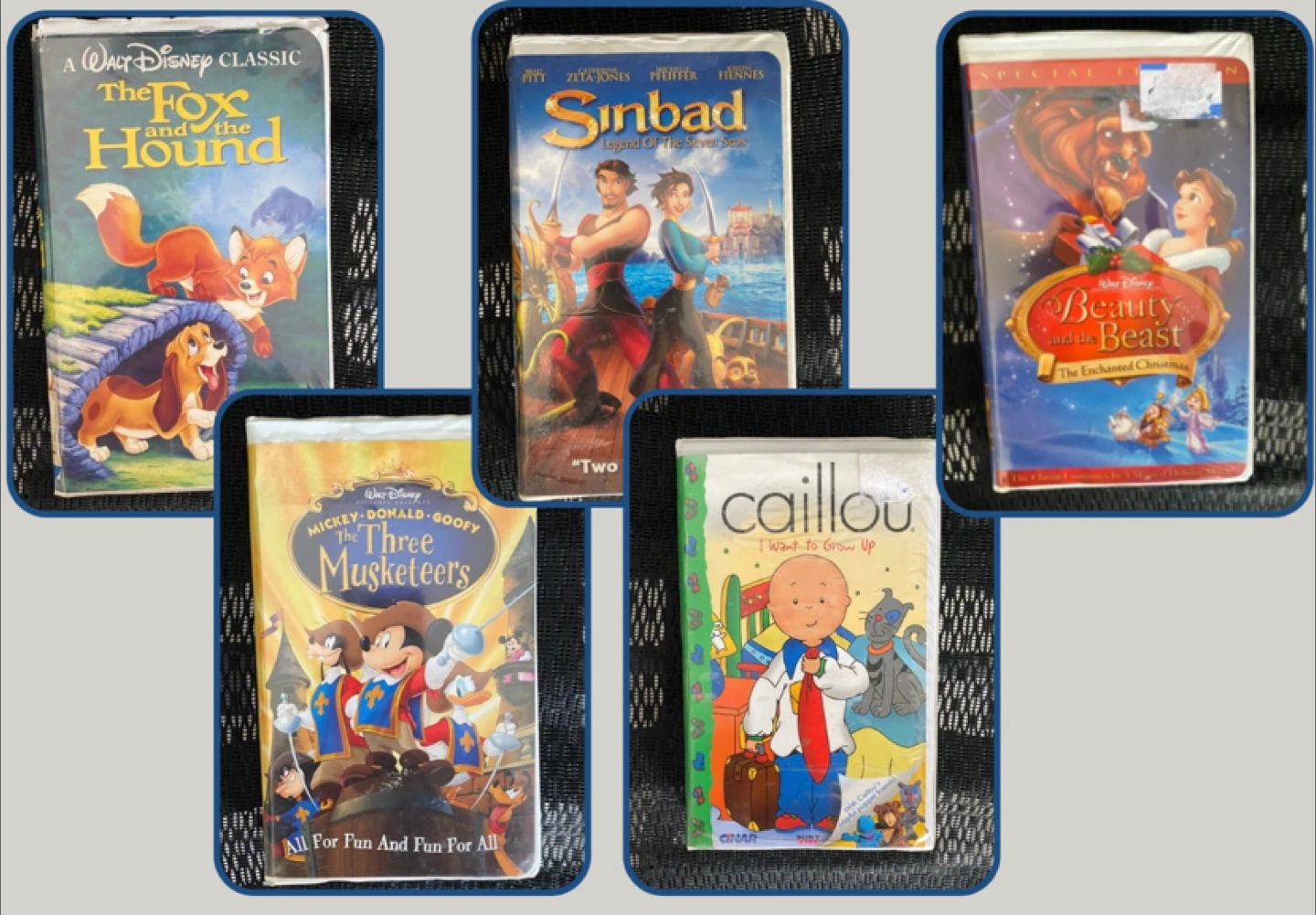 Perfect working order, no damage. Contains 3 Disney classic VHSs, in original box.