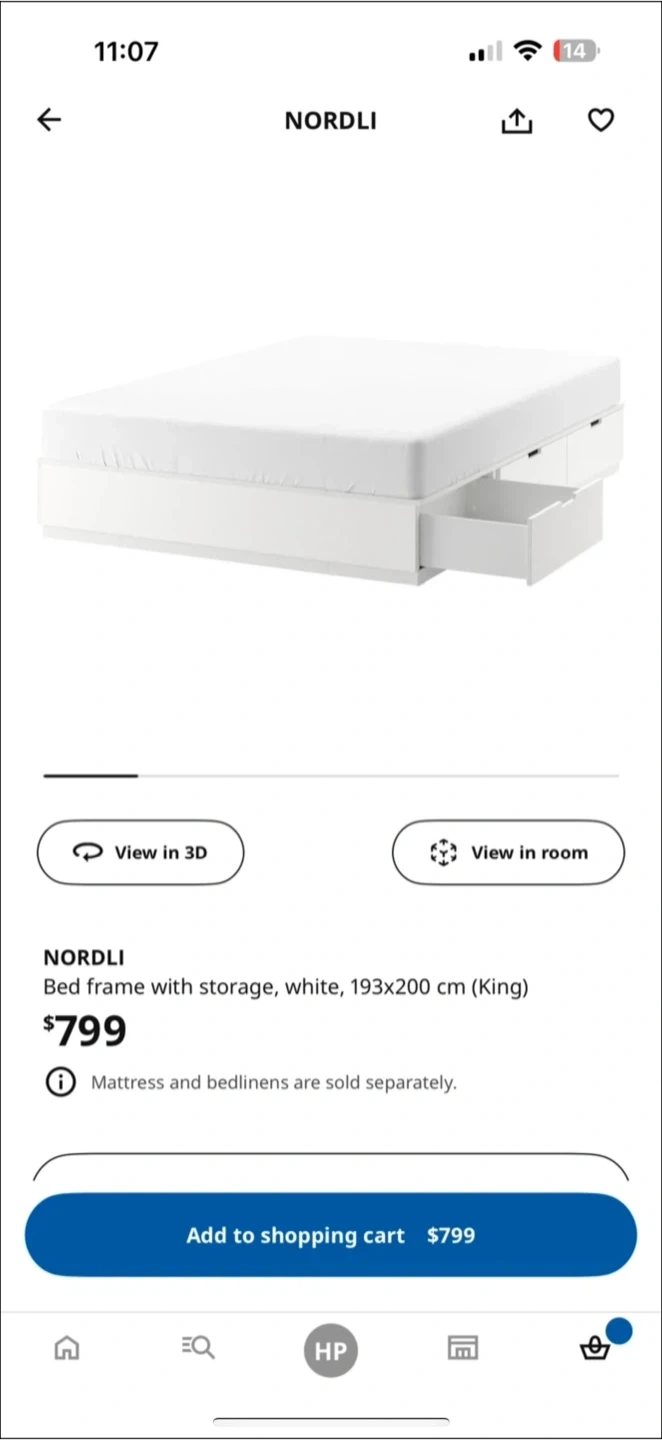 20Selling an IKEA Nordli bed frame with storage in white, king size! The bed frame is 193x200 cm. Originally bought for $799.The bed frame comes in its original packaging. Moving from house need to go as soon as possible price is 650 $