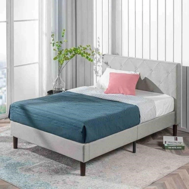 65Zinus FDPB-LG-K Upholstered Diamond Stitched Platform Bed in Sage Grey, King - Package Dimensions: 205x90x15cm 20005264 BBB Condition: New For Sale By: Owner