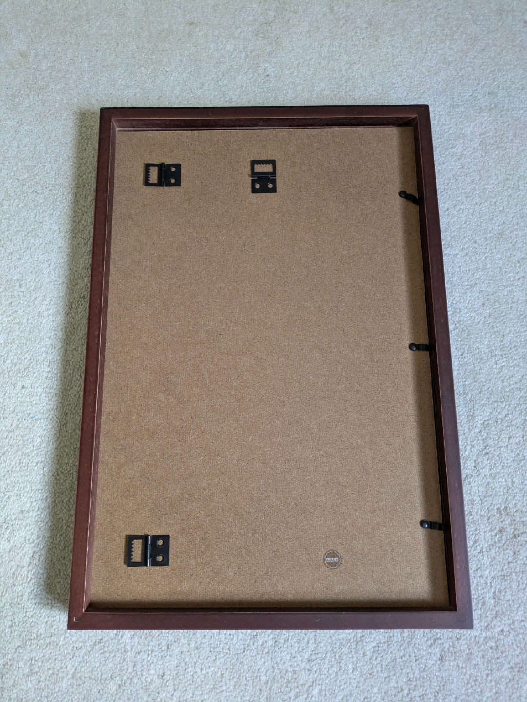A simple brown wooden picture frame, perfect for displaying your favourite memories or artwork. It's in great shape and ready to find a new home.