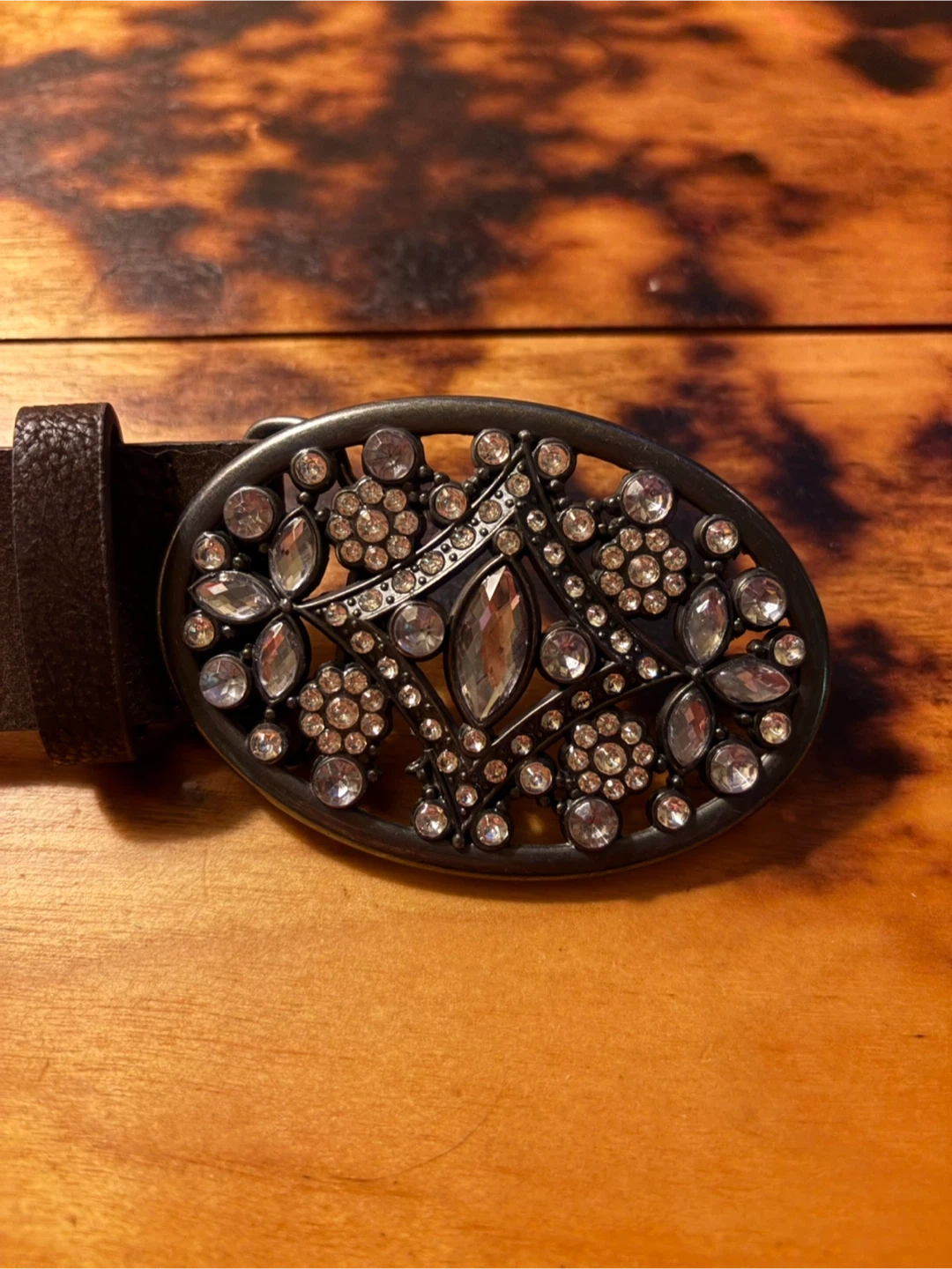 Brown Belt with Rhinestone Buckle