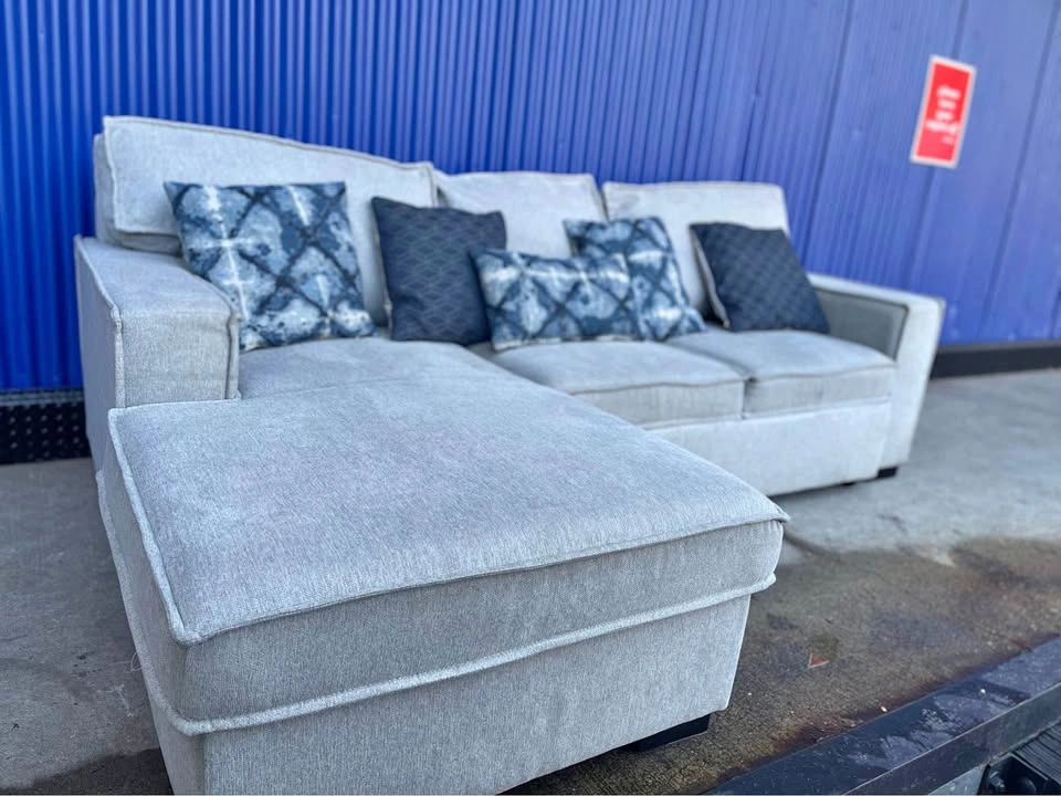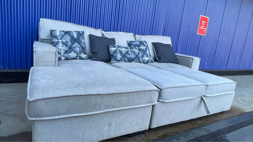 (FREE DELIVERY) Gray Bobs Furniture pullout bed sectional couch