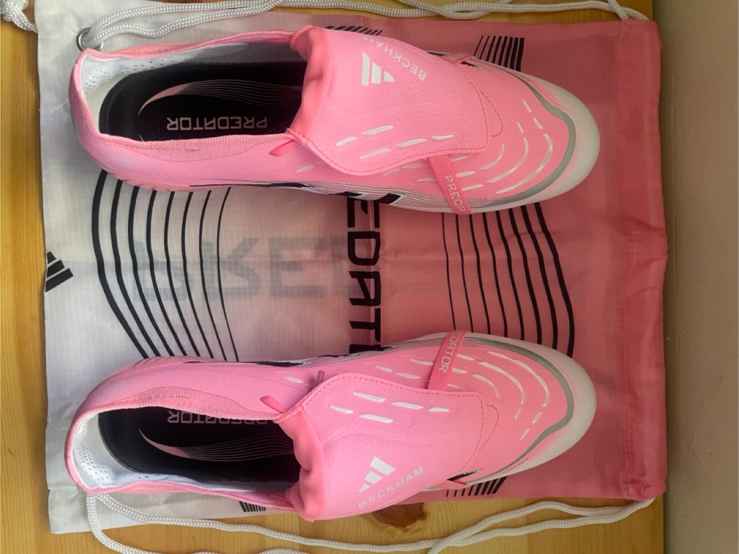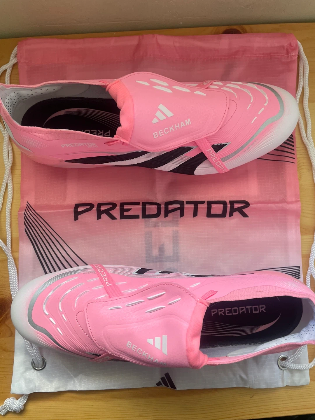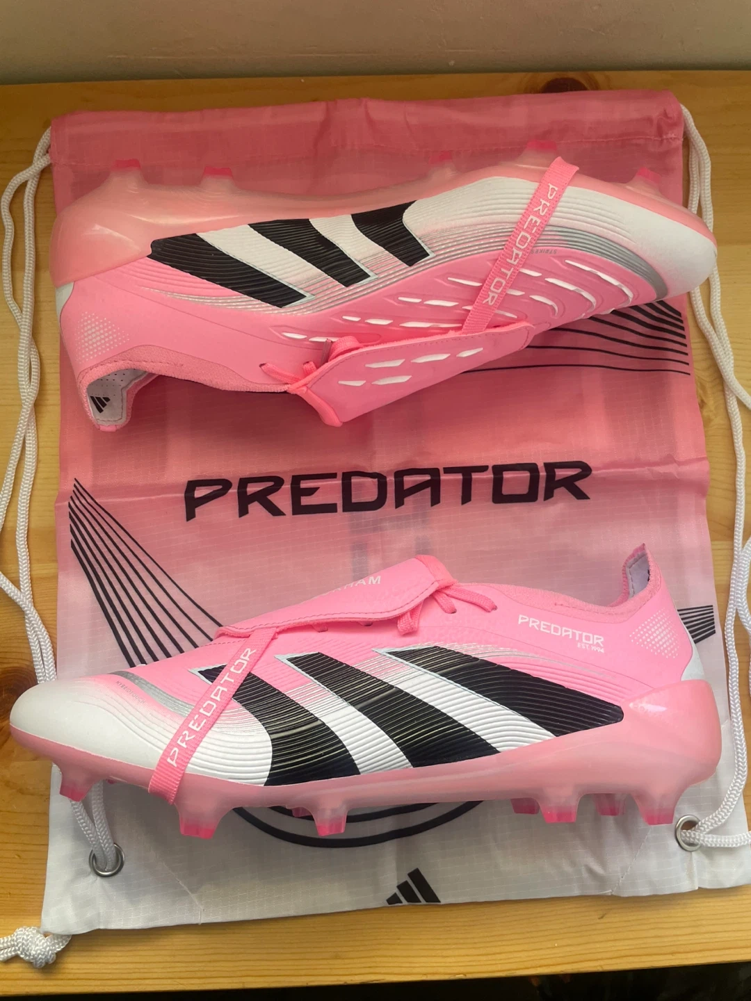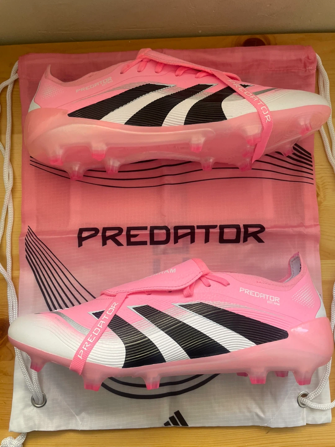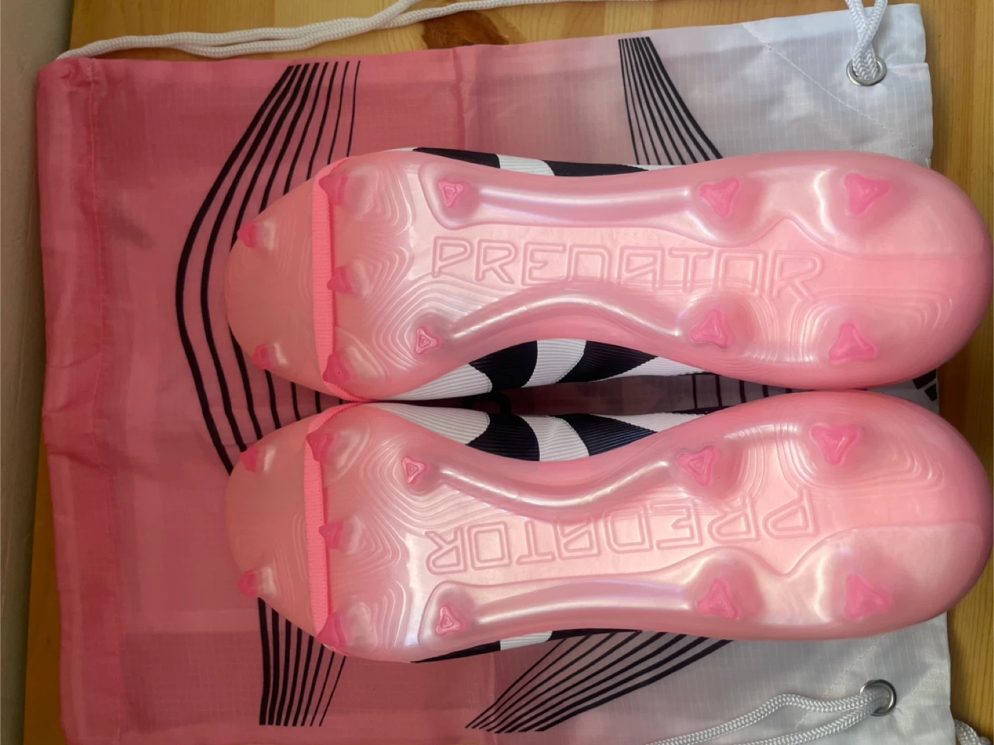 Selling a pair of Adidas Predator soccer cleats in a vibrant pink colour! These cleats are in great condition and come with their original bag. Perfect for dominating the field with style and performance. Size not indicated, please refer to the photos for details!