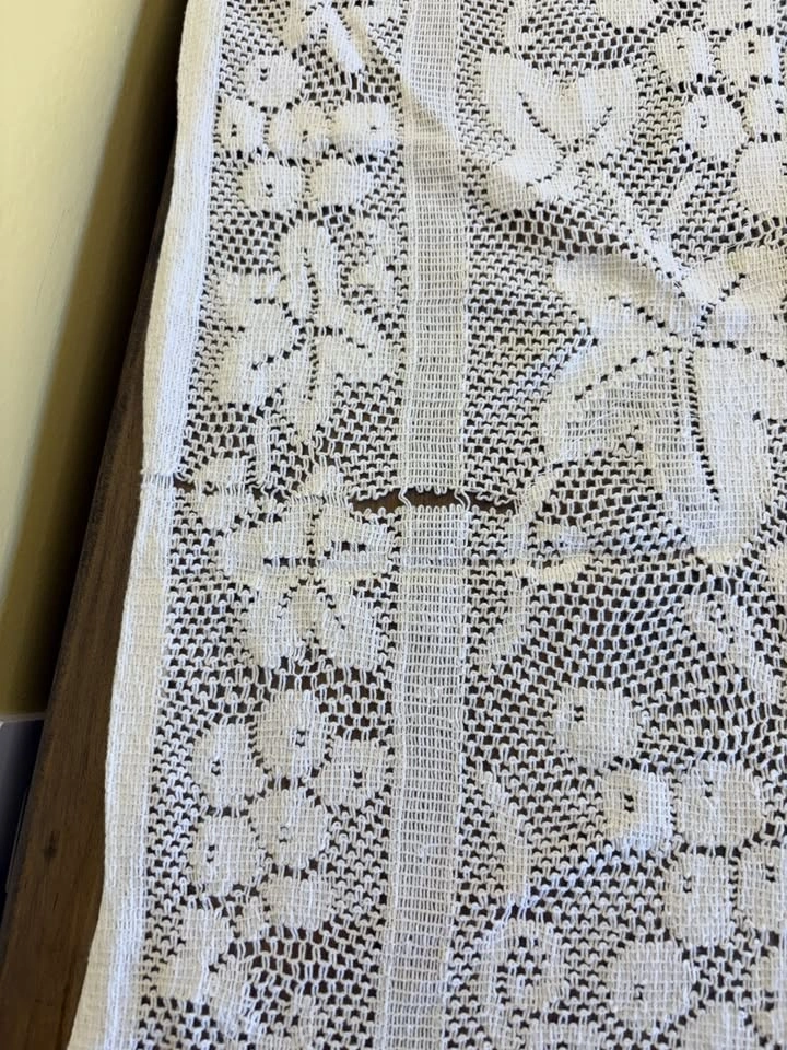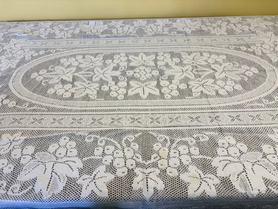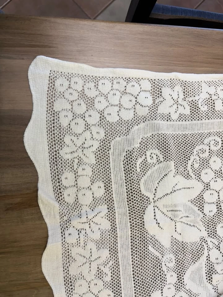 91Vintage Table Cloth Pictured on a 60" x 30" table. That is the largest table it would fit. Some minor yellow stains (pictured) and tear (pictured). Scalloped edges on the short sides. Asking $20. Cash only. Downsizing my home sale! Please see my other ads (always adding more!). Will discount purchases of multiple items! No Holds. Please only message if you’re interested. If ad is still up, item is available. Located in Millwoods, near Menisa Elementary school - here’s the address for Menisa, please plug it into Google maps for approx. location: 933 Knottwood Rd S Northwest, Edmonton, AB T6K 3Y9 Will provide actual address when pickup is confirmed.