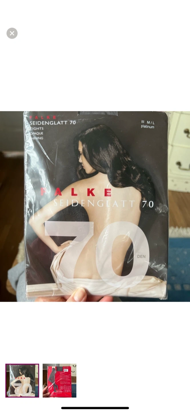 243Selling a pair of Falke Seidenglatt 70 tights in size M/L and the Platinum colour. These tights are opaque and provide a subtle shimmering appearance. They are made in Portugal and are brand new in the original packaging