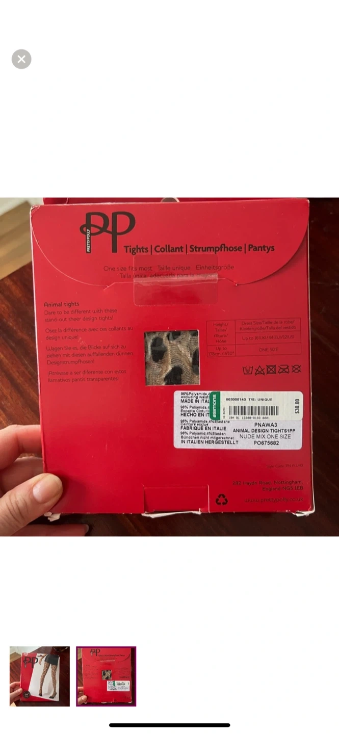 243Selling a pair of Pretty Polly Animal Tights in one size fits most! These tights are made in Italy and feature a stylish animal print design. They are perfect for adding a touch of flair to any outfit