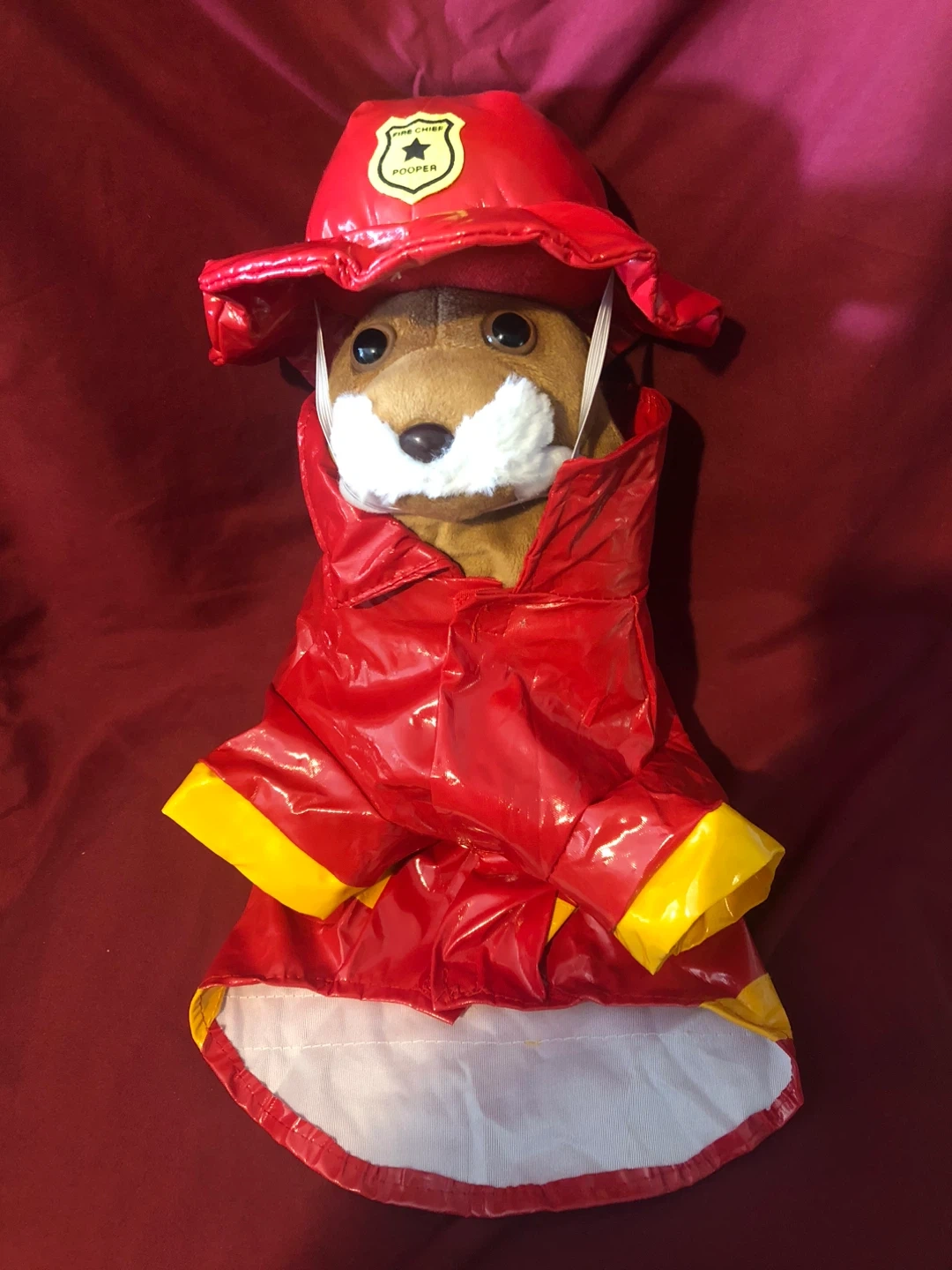 Get your pup ready for Halloween with this adorable firefighter costume! It's in great shape and includes the jacket and hat. It would best fit a small dog.