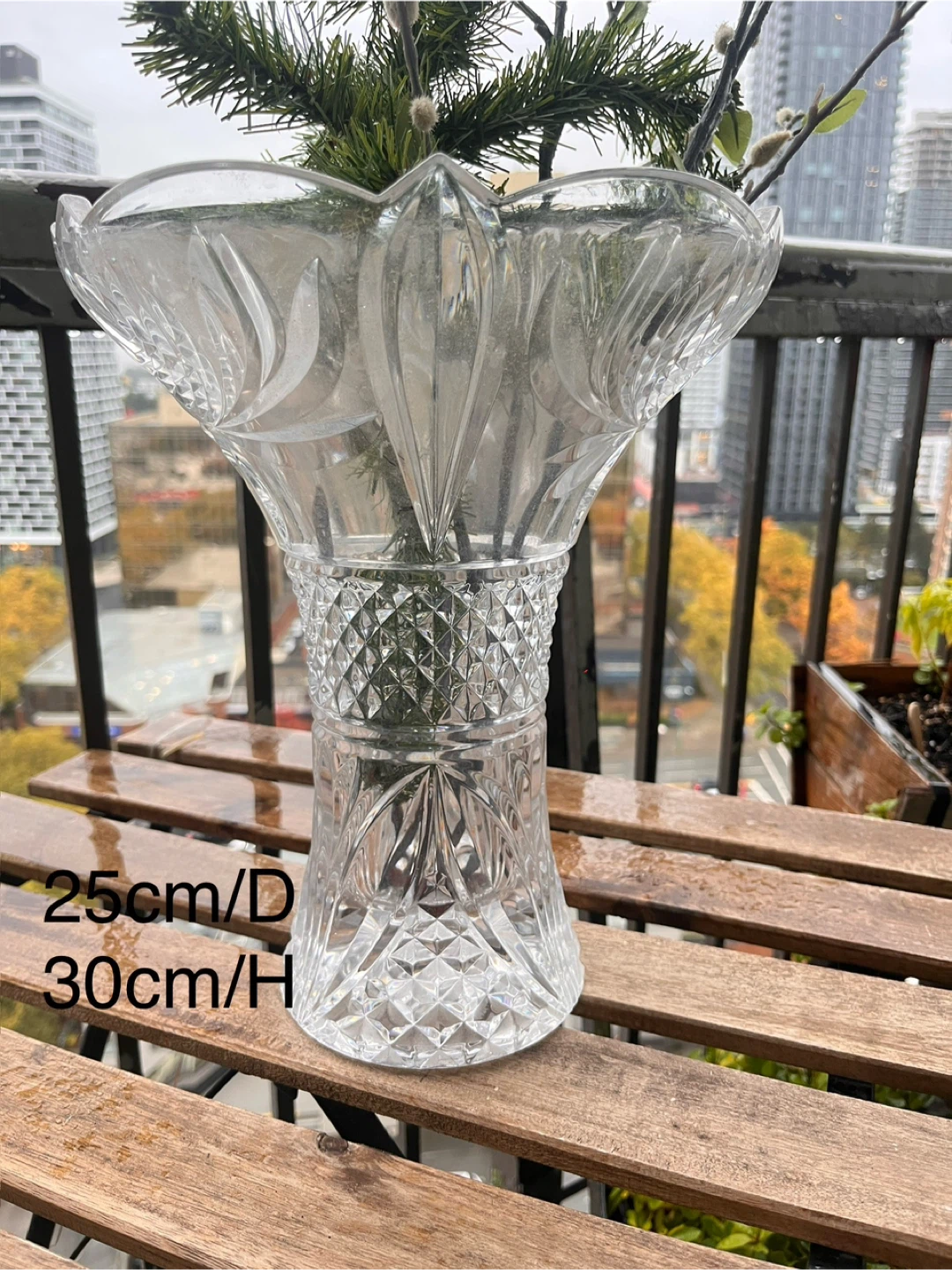 Crystal Vase - 25cm Diameter, 30cm Height