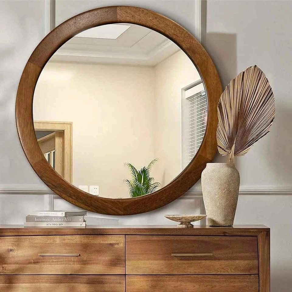 The rustic mirror made of walnut, it is sturdy and durable, and enhances your home style. Adds a modern and natural sense to your space. The high-quality tempered glass mirror presents a beautiful crystal clear reflection without any distortion.