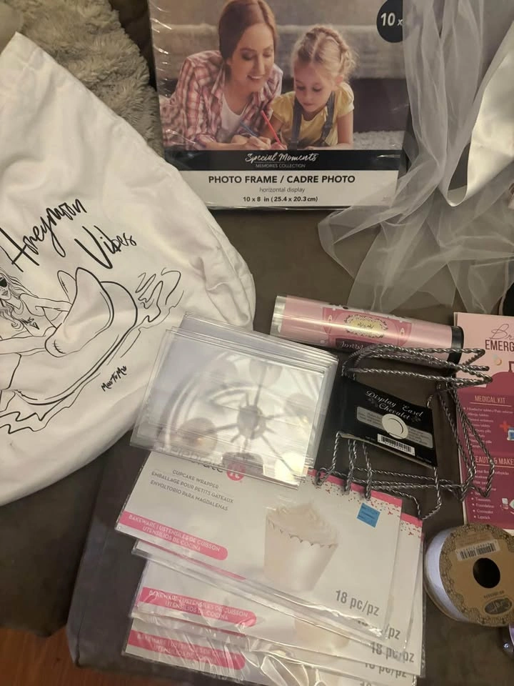 Tons of wedding stuff for sale! Signs, motif candles, picture frames, cupcake wrappers, ribbon, count down calendar, window decal, honeymoon tote, bridal shower/bachelorette veil and sash! Make me an offer! Would prefer to sell it all together, but will separate if need be.