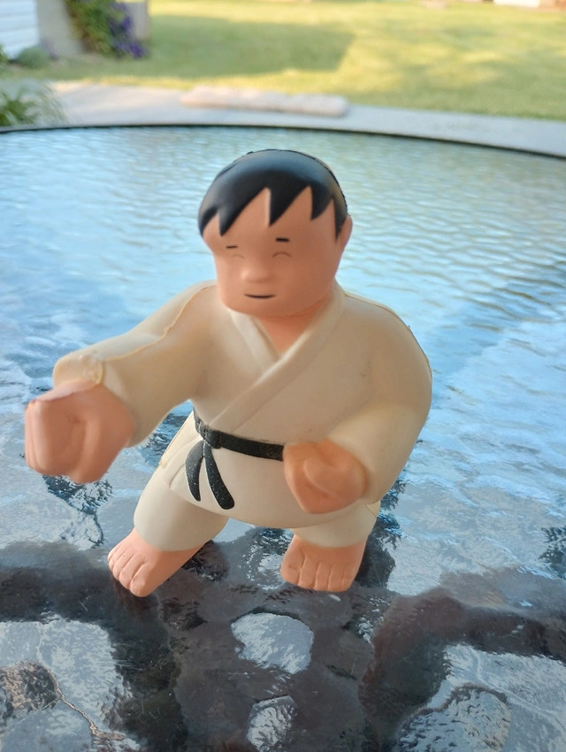 Century Martial Arts stress squeeze toy. Discolouration to Gui, belt, some cracks from use. Still lots of "squeezability" left. Pick up near Banwell and the Expressway.