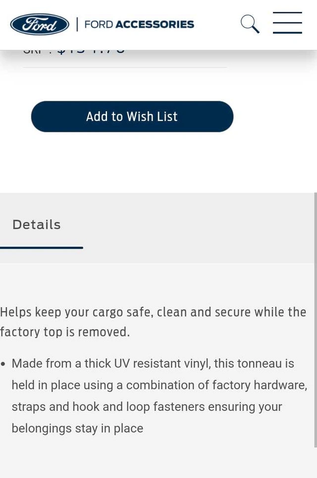 4 door Bronco soft tonneau Cover. Purchased from dealership. Used only a couple of times last summer. See pictures for info. Pick up near Banwell and the Expressway.