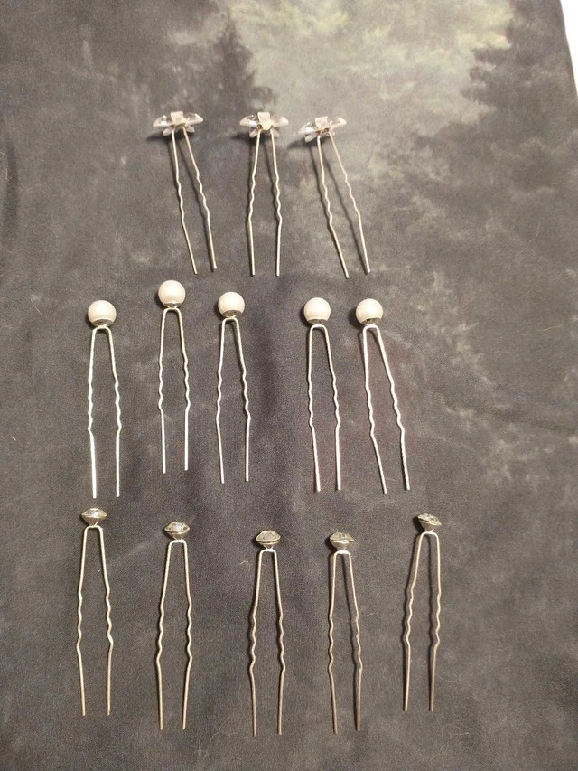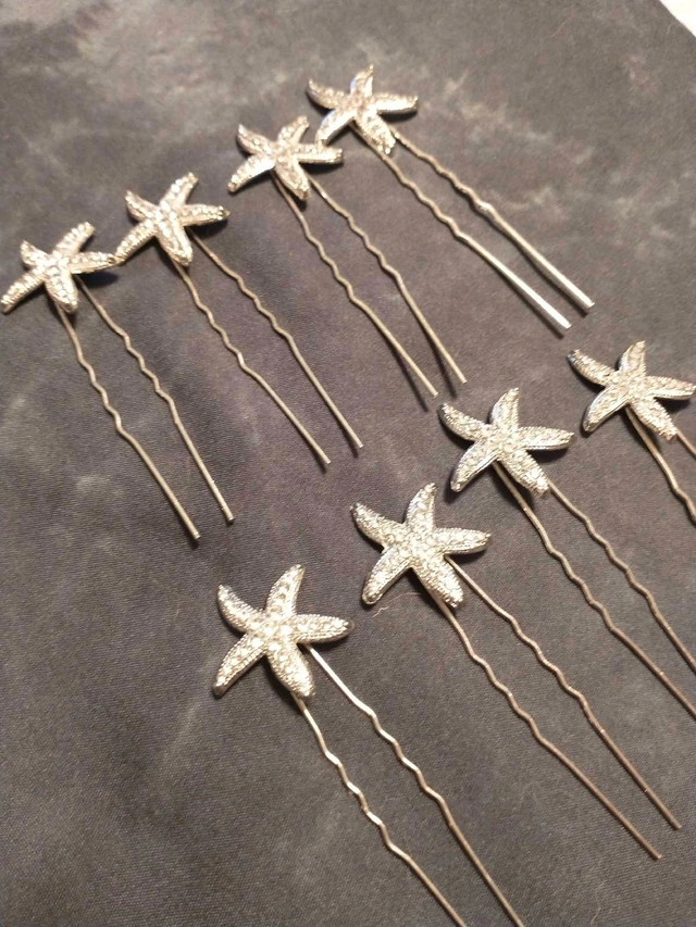 18 pins total: 8 silver/gem starfish, 5 pearl, 4 'diamond'/ gem, 1 large gold starfish clip. Excellent condition. Smoke free home. Pick up near Banwell and the Expressway.