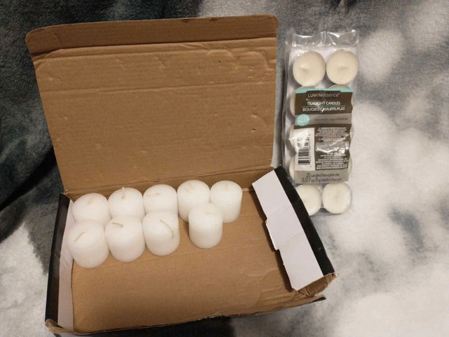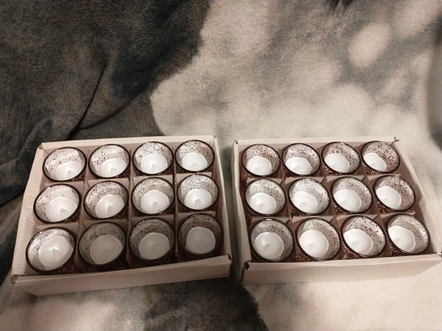 24 Rose Gold Flecked Candle Holders. About 2.5 inches tall (see pictures). Comes with: