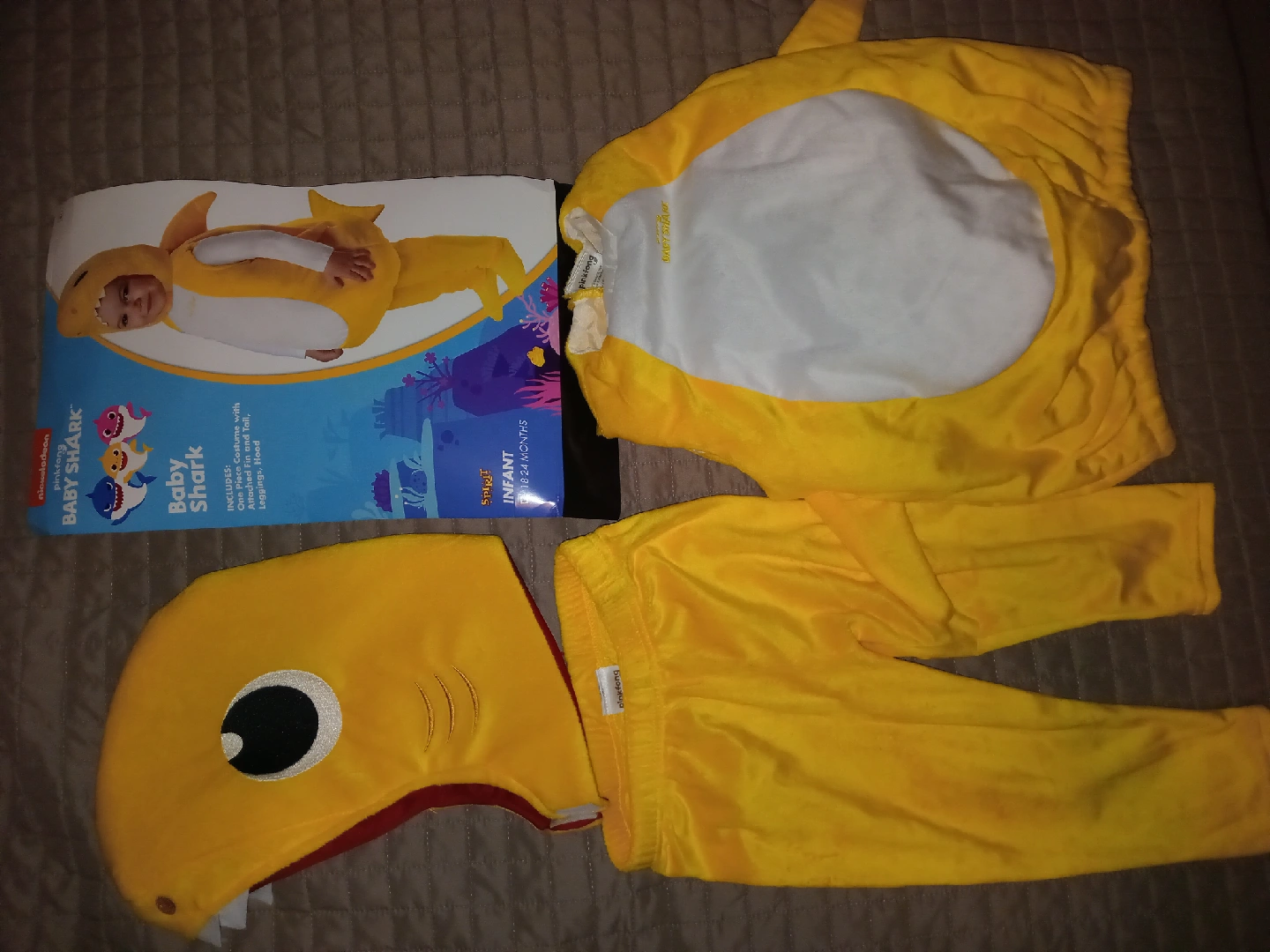Selling a gently used Baby Shark costume for infants. This adorable outfit is sized for 18-24 months. Perfect for dress-up or Halloween!