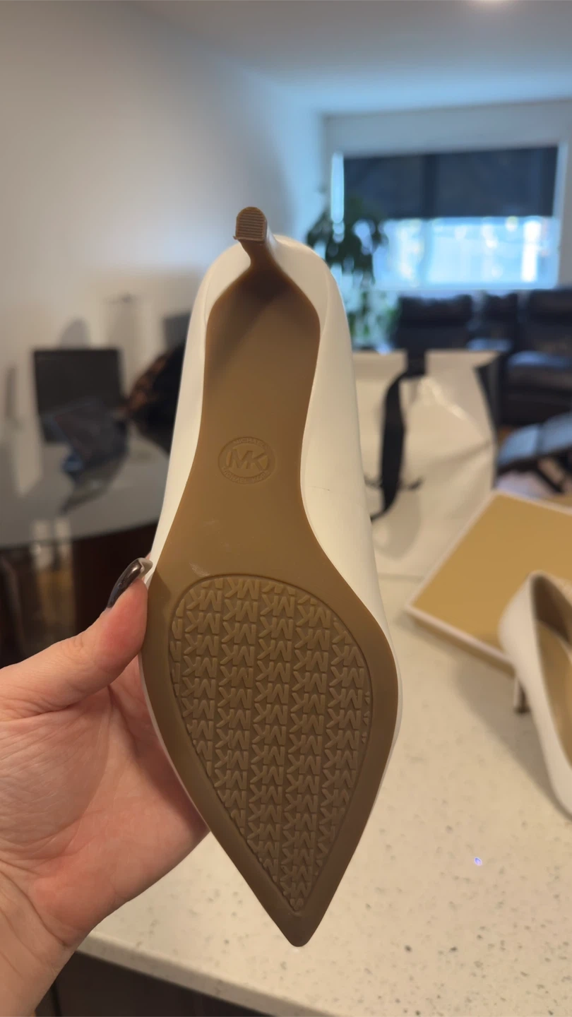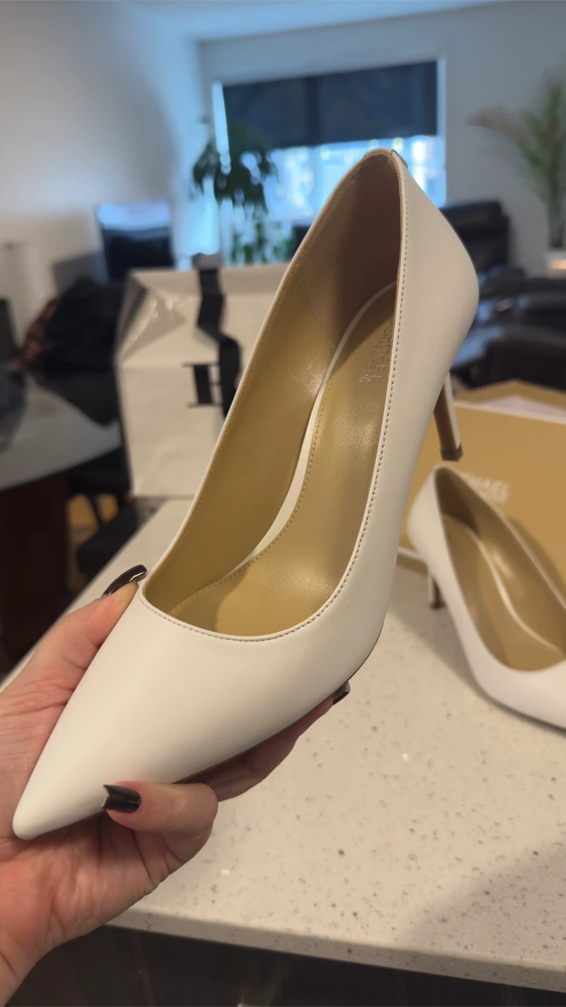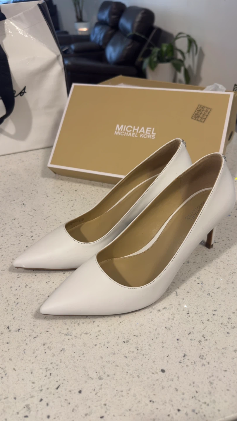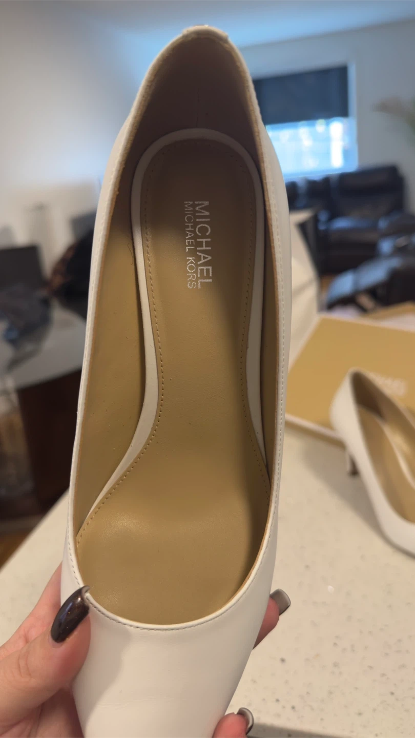10Selling a pair of Michael Kors heels in white leather. They are in great condition and size 7,5. Comes with the box!