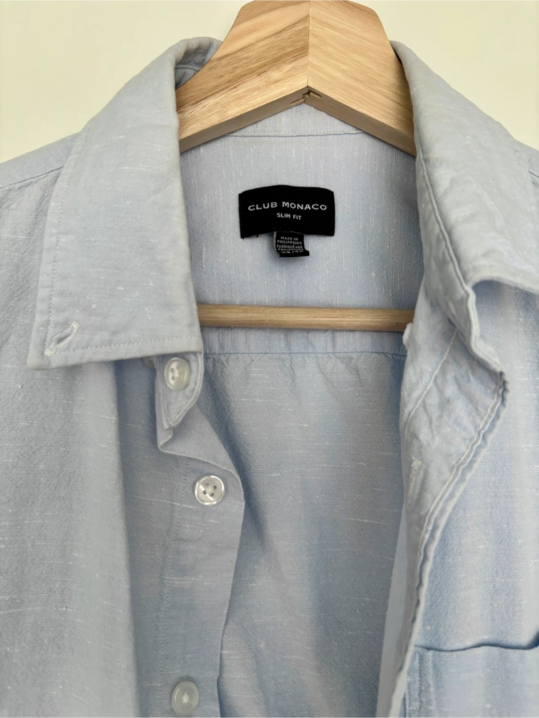 Selling a Club Monaco slim fit shirt in a light blue colour. Size XS