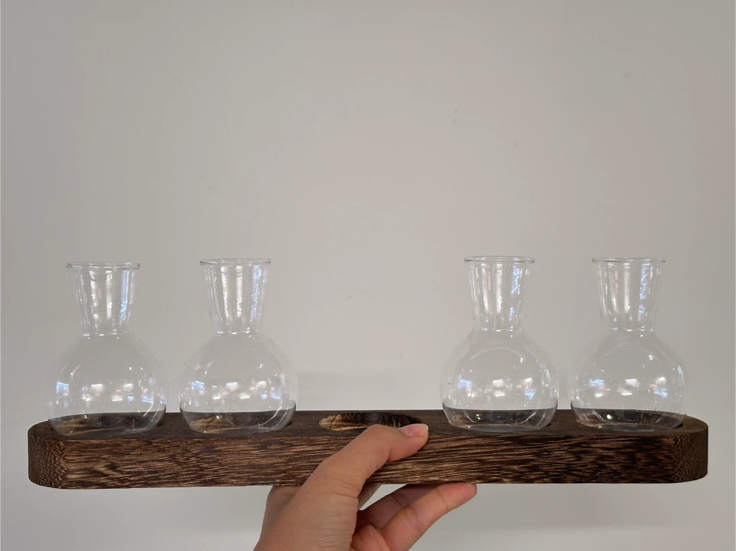 1000+Glass propogation tubes with a wooden base, input used once shortly. Decluttering One of the tubes fell and broke so only 4 included as pictured. All prices are flexible, feel free to make an offer or bundle for discounts! ๐