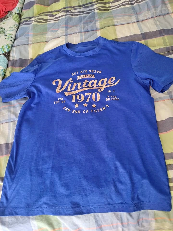 65Never worn. Brand new 1970 T shirt in Blue. Very stenchy material. Size Small for men/ medium for women