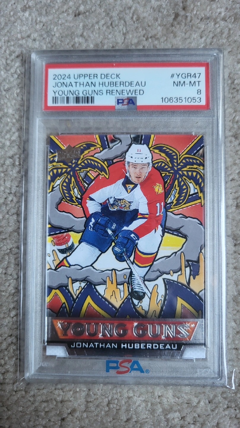57Selling a 2024 Upper Deck Jonathan Huberdeau Young Guns Renewed hockey card! It's in NM-MT condition and graded an 8 by PSA. A great addition to any hockey card collection!