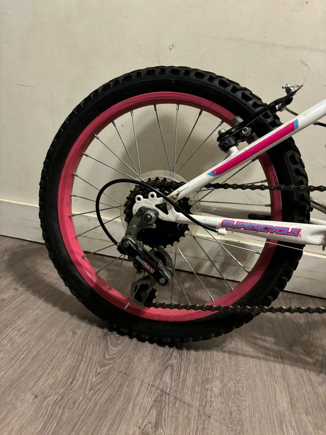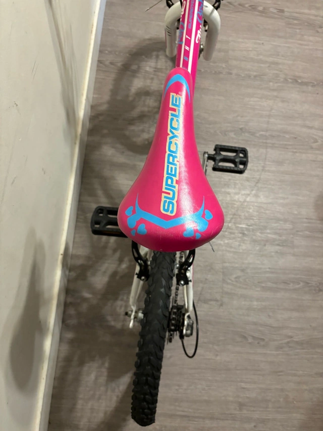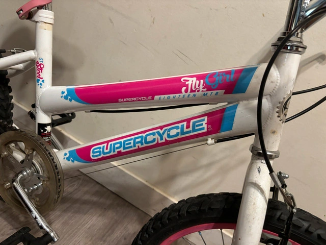 This is a used Supercycle Fly Girl 18-inch bike, perfect for young riders ready to hit the trails or cruise around the neighbourhood. It has sturdy construction and fun design elements that any child would love! Key features include: * Durable frame * Comfortable seat * Easy-to-use brakes I'm asking $75 obo. If the ad is up, it's still available!