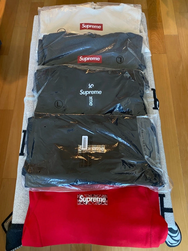 Selling brand new SUPREME HOODIES SWEATSHIRTS, ALL ARE IN BRAND NEW INSEALED UNWORN CONDITION. CASH DEAL SELF PICK UP IN MARKHAM. thx SUPREME FW24 BOX LOGO HOODIE BONE COLOR SIZE XL $350 SUPREME FW21 BOX LOGO HOODIE CHARCOAL LARGE $350 SUPREME FW20 CROSS BOX LOGO HOODIE BLACK LARGE $350 SUPREME SS22 BURBERRY BOX LOGO HOODIE BLACK XL $650 SUPREME FW19 BOX LOGO BANDANA RED LARGE $300