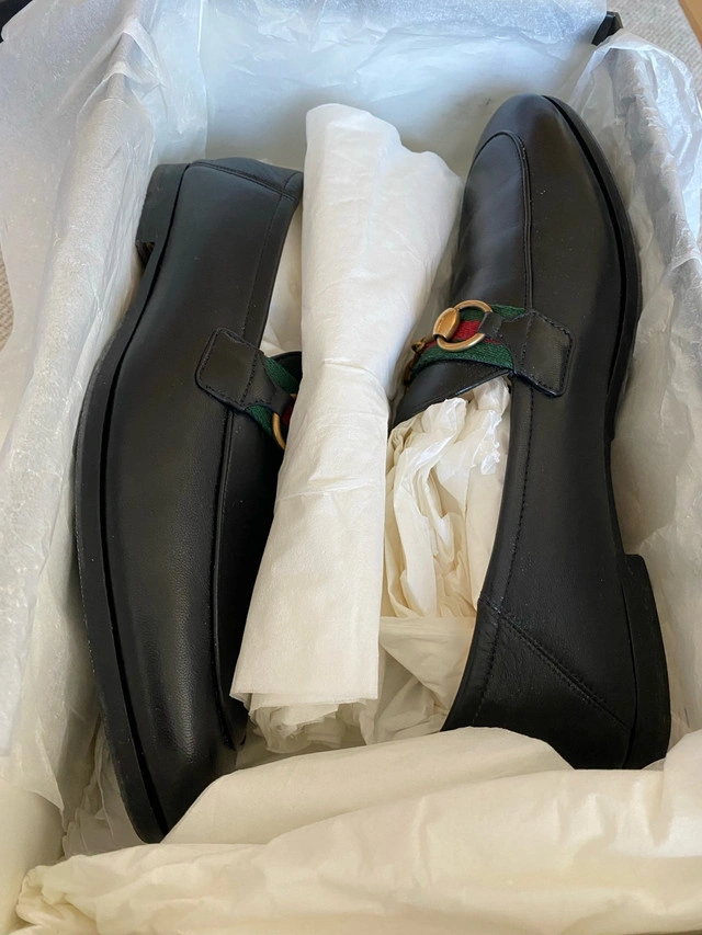 Step out in style with these classic Gucci Black Web Horsebit Loafers, a sophisticated addition to any gentleman's wardrobe. These loafers feature the iconic Gucci horsebit detail and are made from high-quality leather. These have been worn just once. Like new condition. Adding the shield at bottom for extra protection. * Brand: Gucci * Colour: Black * Style: Loafers * Material: Calf Leather * Detail: Web Horsebit * Size: US 9 IT42 UK8 Looking to add a touch of Italian luxury to your shoe collection? These Gucci loafers are your ticket! Don't miss out – if the ad's up, they're still waiting for their next adventure.