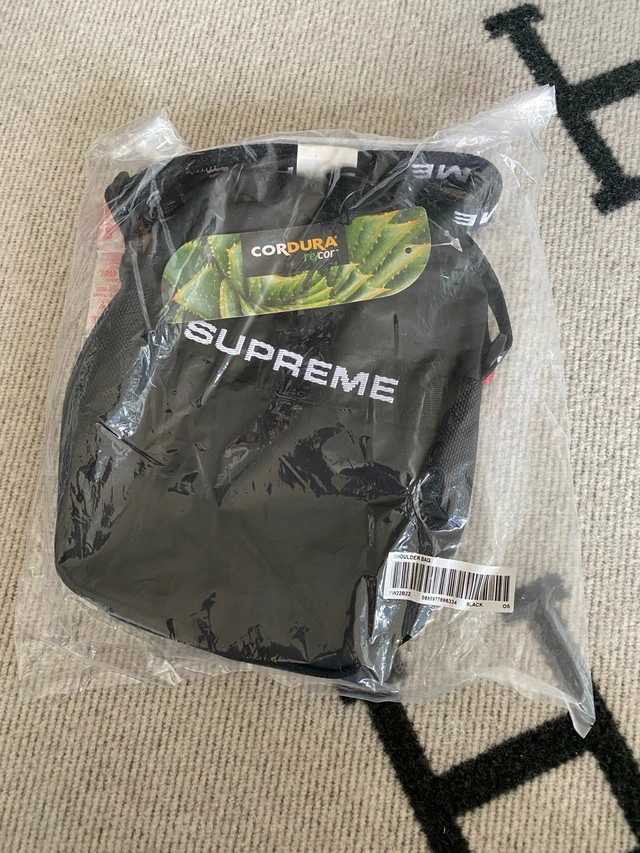 66This Supreme FW22 Shoulder Bag in Black is brand new, still sealed in its original packaging. It's a stylish and functional accessory made with durable materials. Features: * Brand: Supreme * Model: FW22 Shoulder Bag * Colour: Black * Condition: Brand New in sealed. Looking to add a touch of street style to your look? This bag is your answer! Don't miss out on this Supreme piece. P.S. If the ad is up, it's available!