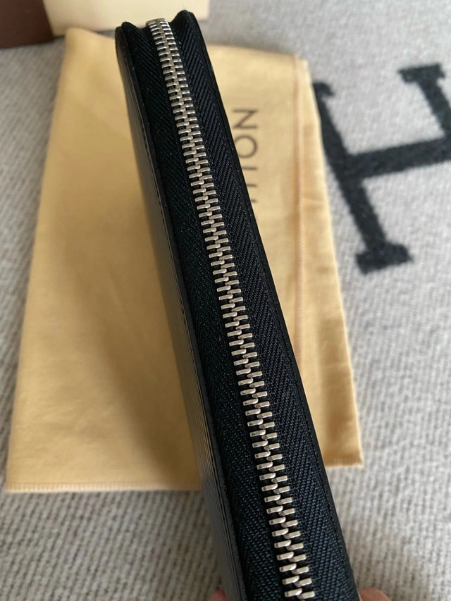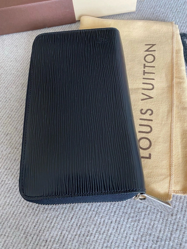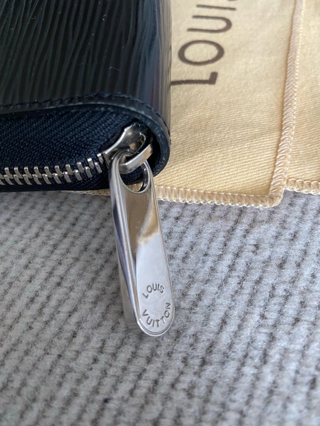66The iconic Zippy wallet looks elegant in black Epi leather with a silver-tone zip and pull. This model opens to reveal a well-organized interior with multiple compartments, a zipped pocket for coins and 12 card slots. Its grained-leather exterior is discreetly embossed with the LV Initials. Box and Bag and Paper included. 7.7 x 4.1 x 1 inches (length x height x width ) Black Epi-grained cowhide leather Grained cowhide leather lining Gold-color hardware Zip closure 3 large gusseted compartments Open the compartment for bills Zipped coin pocket 2 inside flat pockets 12 card slots LIKE NEW CONDITION, Cash deal and pick up in Markham. Thx