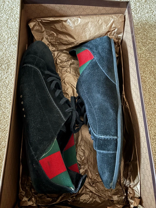 65Beautiful preowned vintage black Gucci suede sneakers for sale. Comes with the original box and accessories, please see pictures for overall condition and measurements. Asking price: $200 Cash or ET accepted. Please don’t hesitate to ask questions! Also kindly check out my profile for other listings on other rare vintage items. All vintage premium items that we sell are genuine and authentic. Local meet ups in Scarborough town centre or Newmarket.